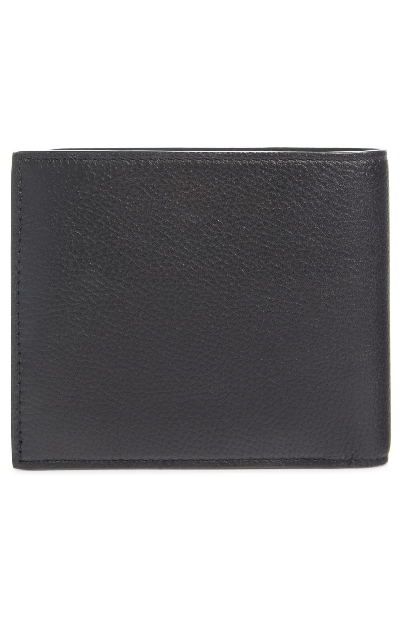 Signature logotype marks the exterior of a pebbled leather wallet designed to hold your cash, plastic, ID and even some spare change.