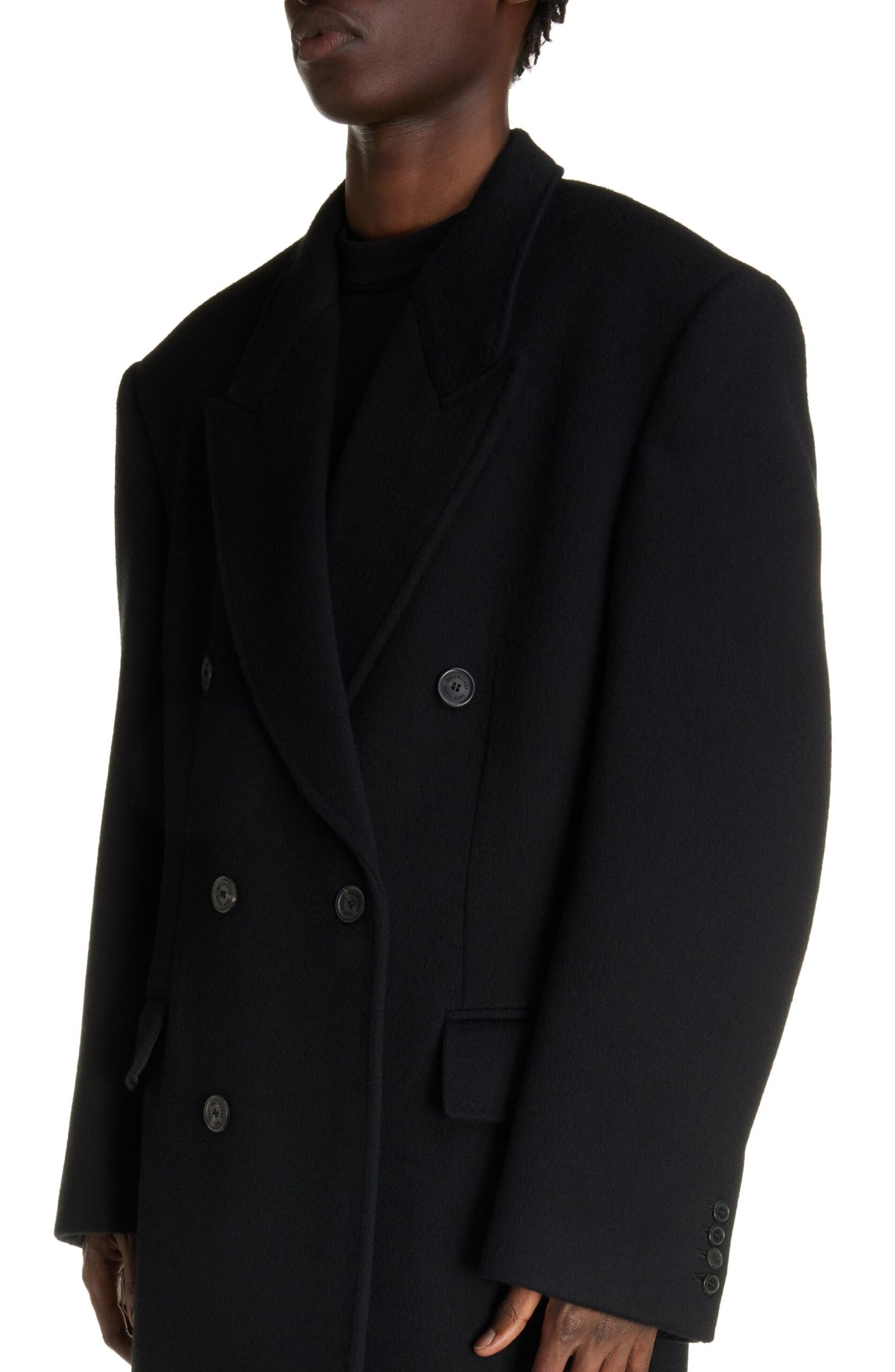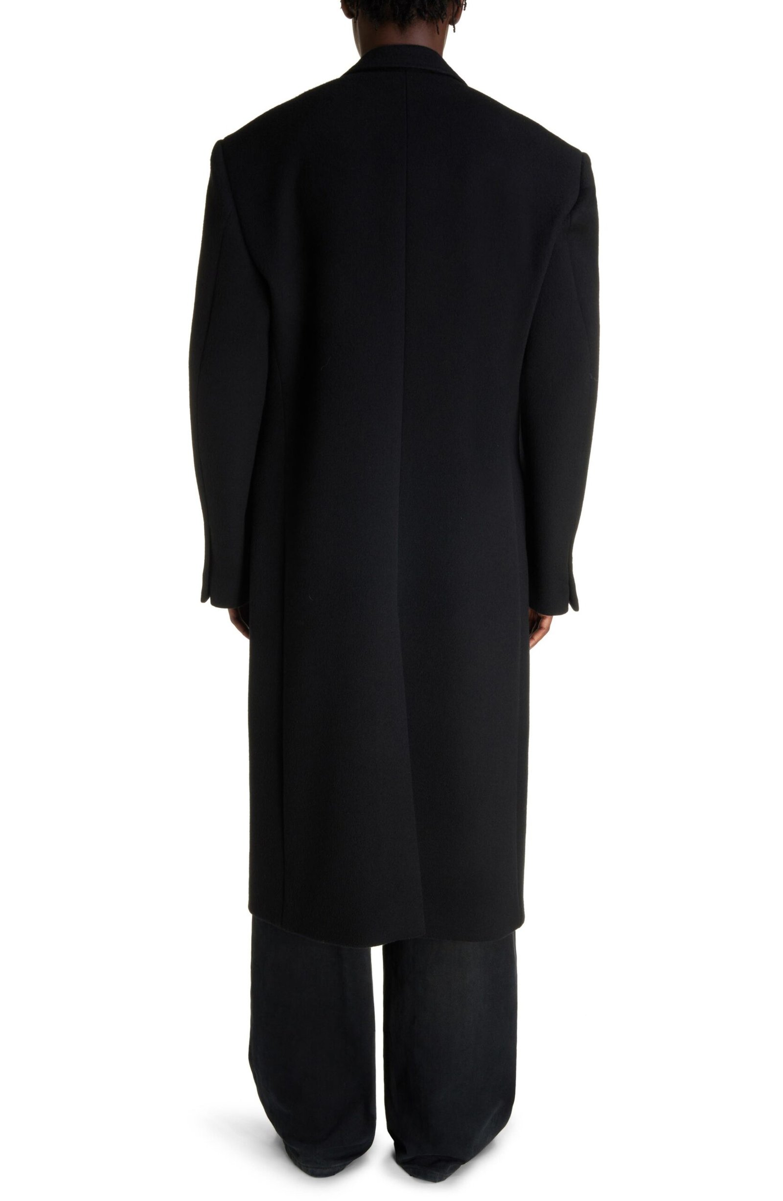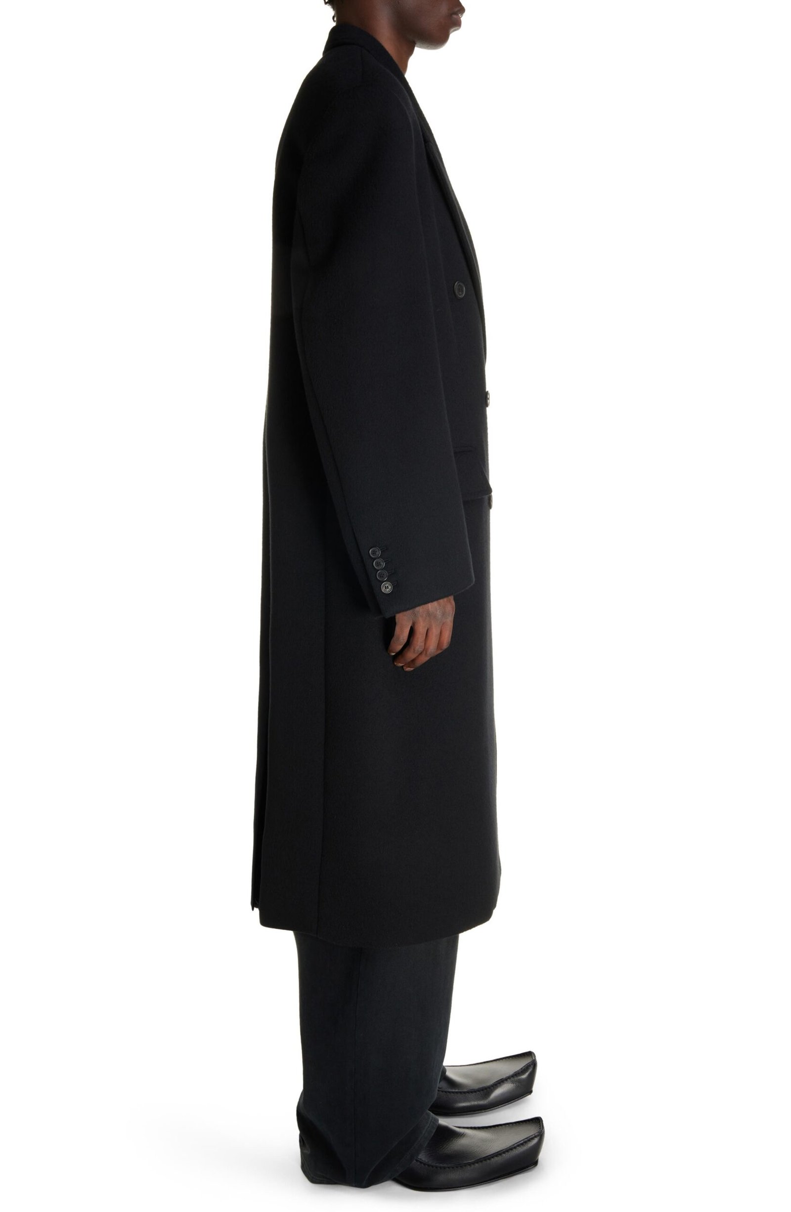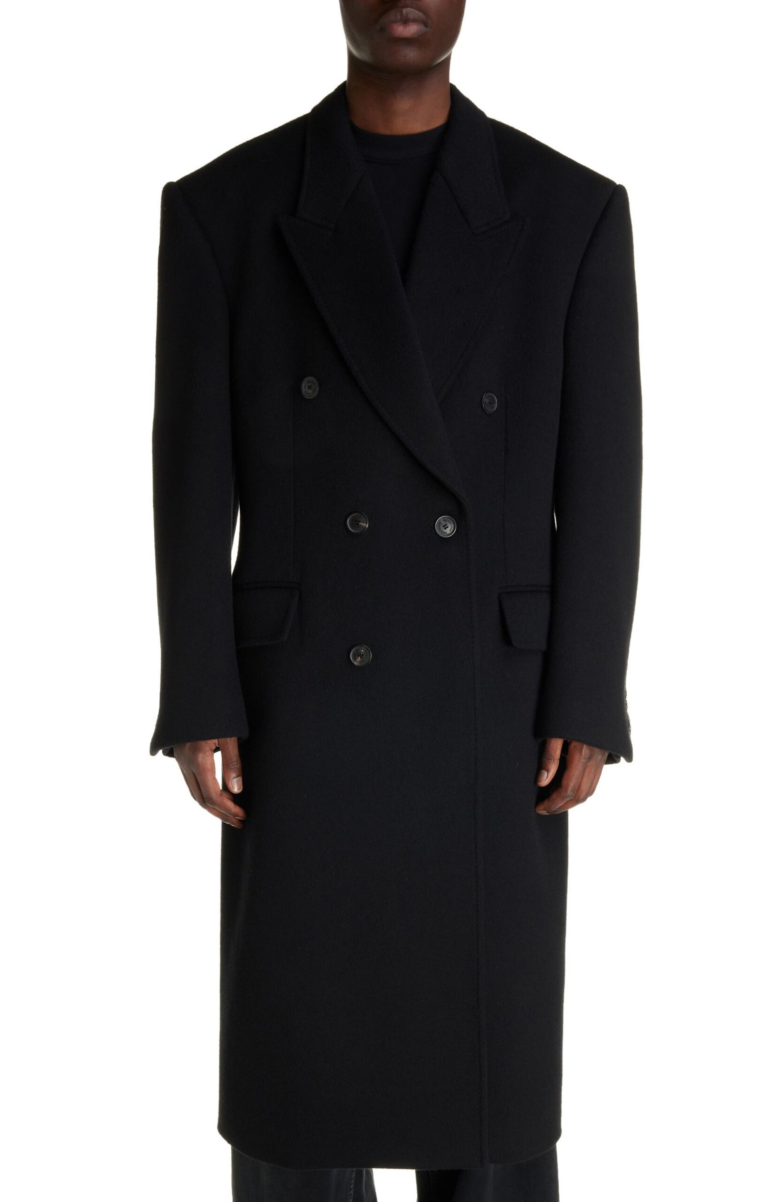 Crafted in a double-breasted silhouette from double-face wool fabric, this polished topcoat serves as a timeless investment piece.