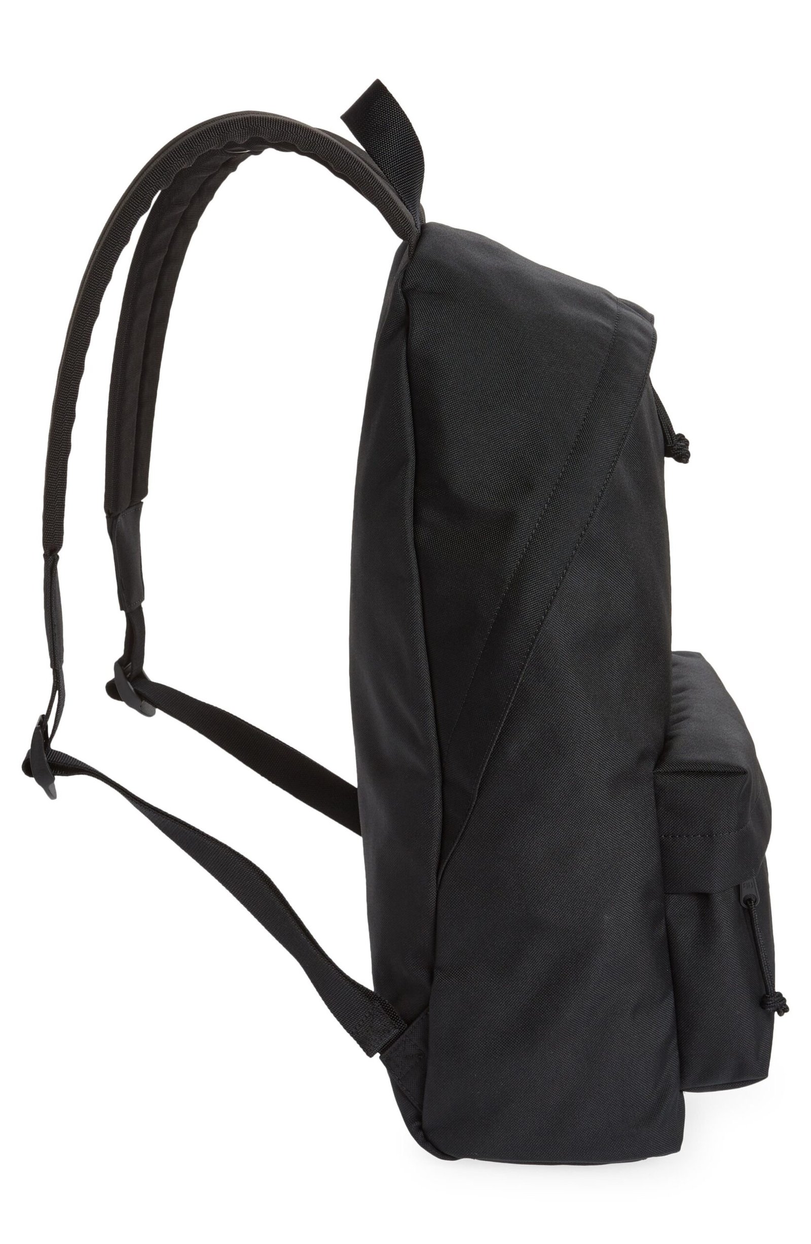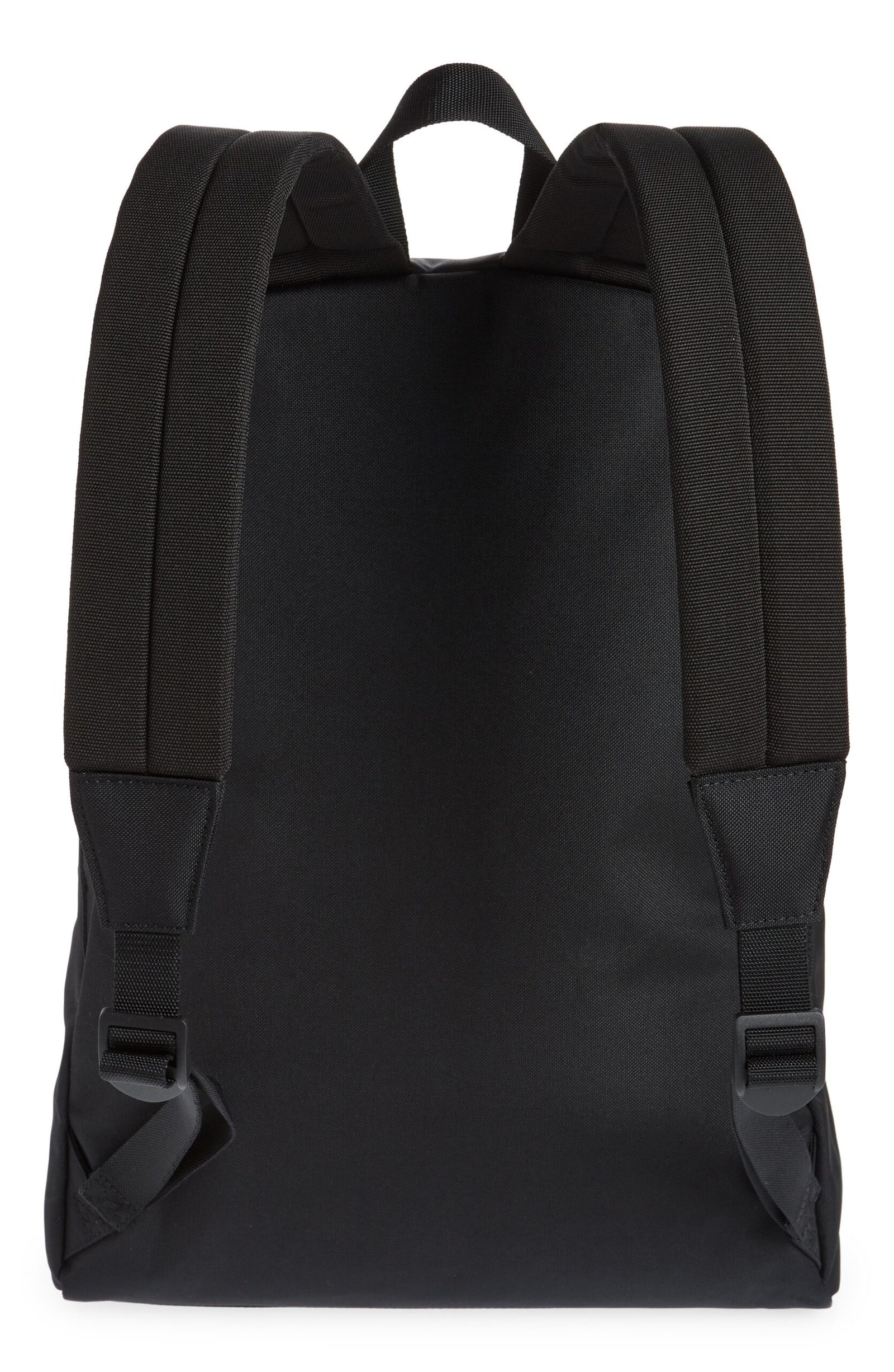 Explore near and far with this sturdy canvas backpack featuring comfortably padded straps and a convenient zip pocket branded with a logo label.