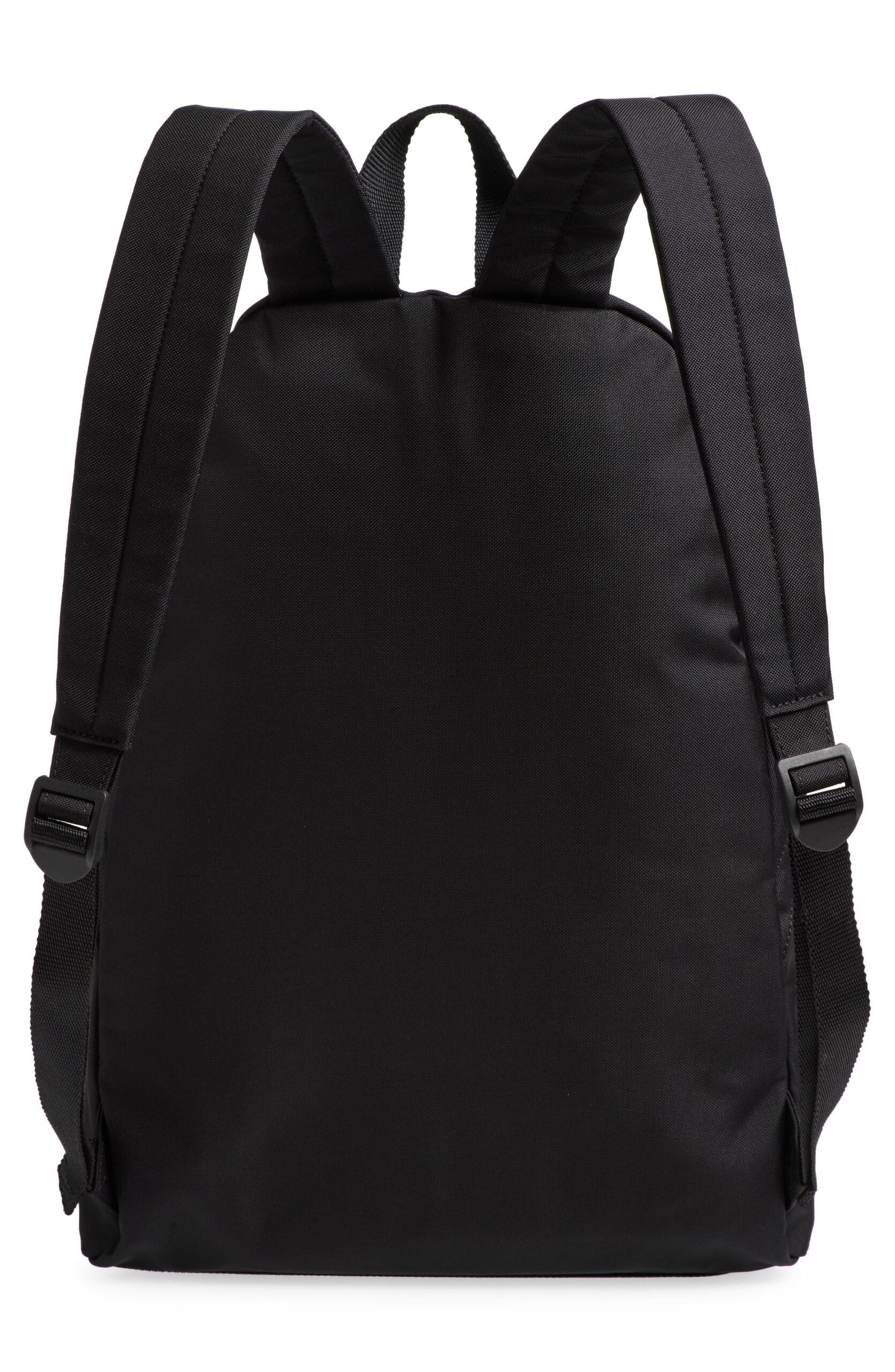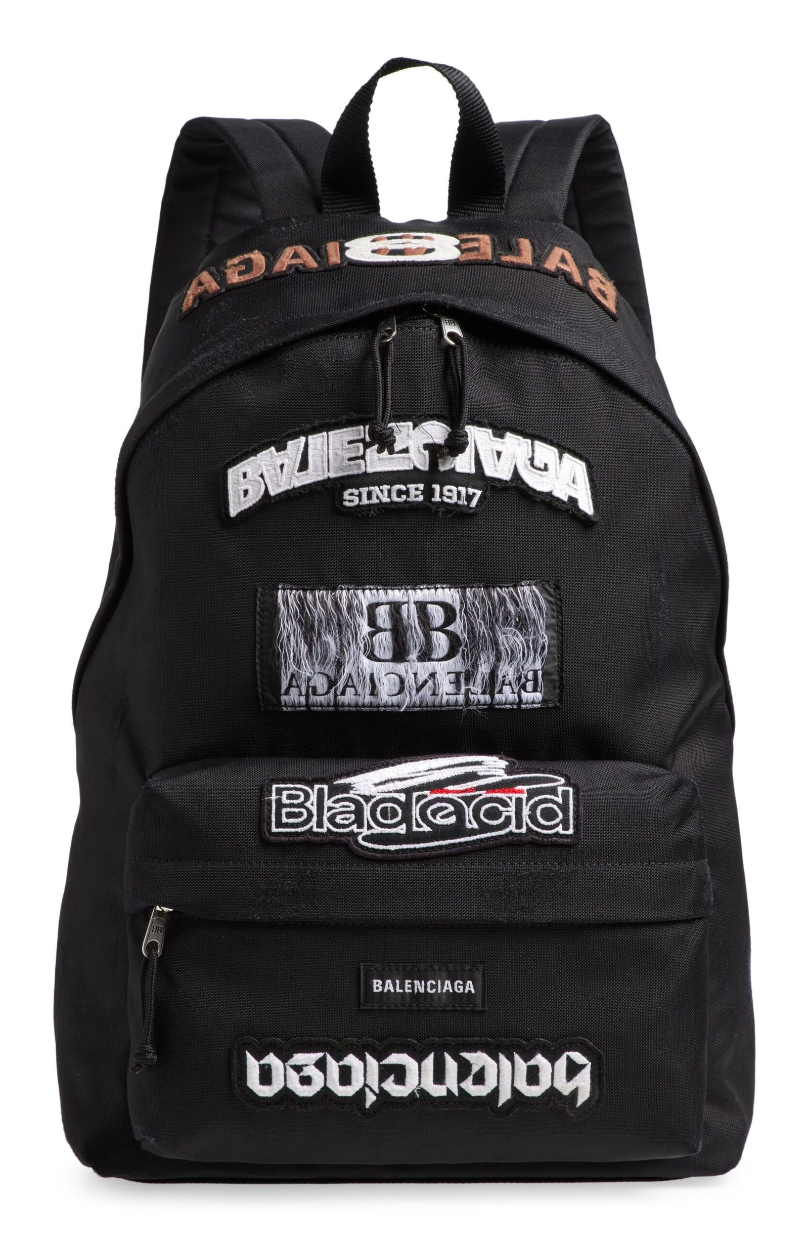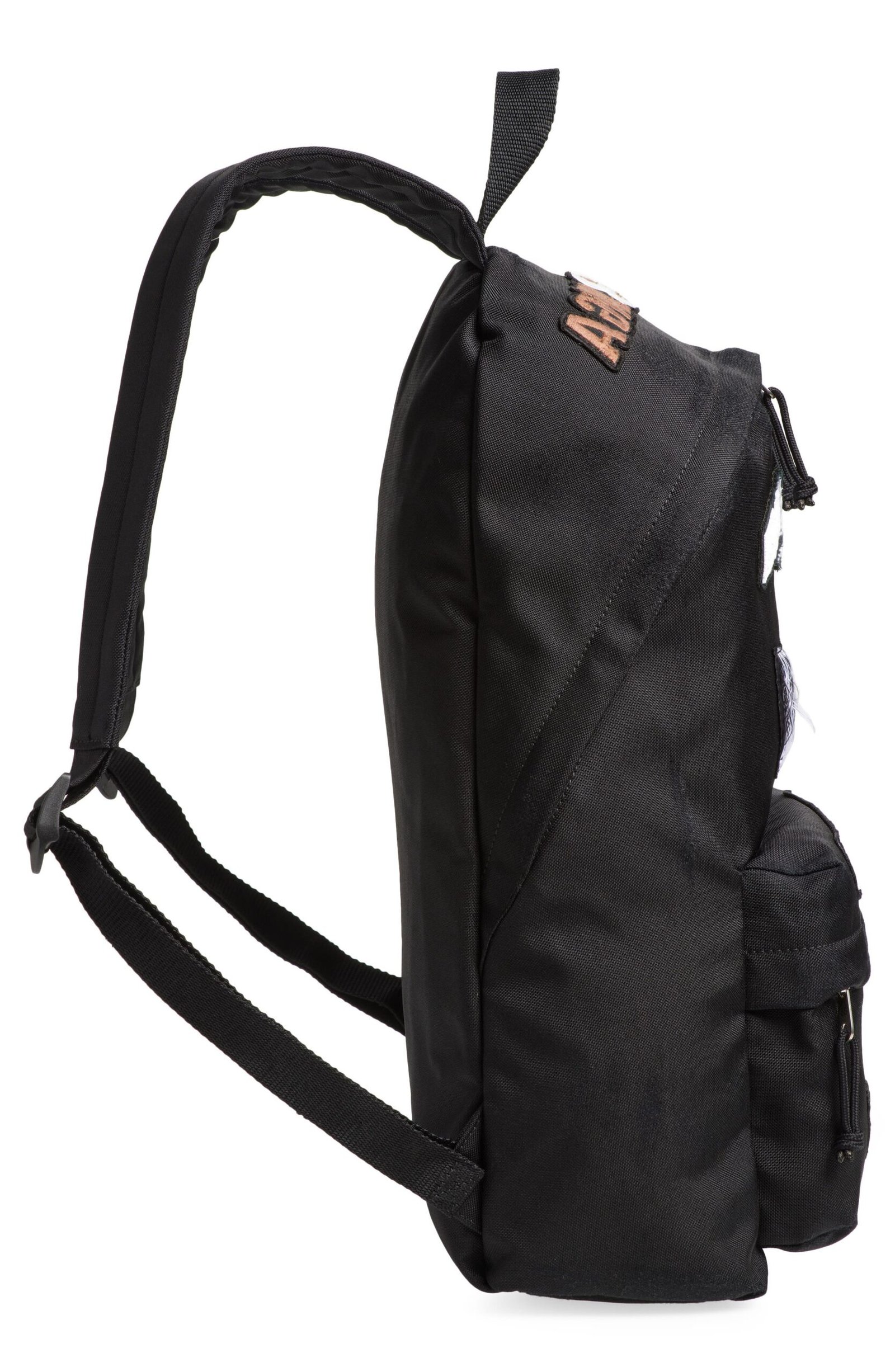 Explore near and far with this durable backpack featuring a collection of brand patches embroidered on used recycled nylon.