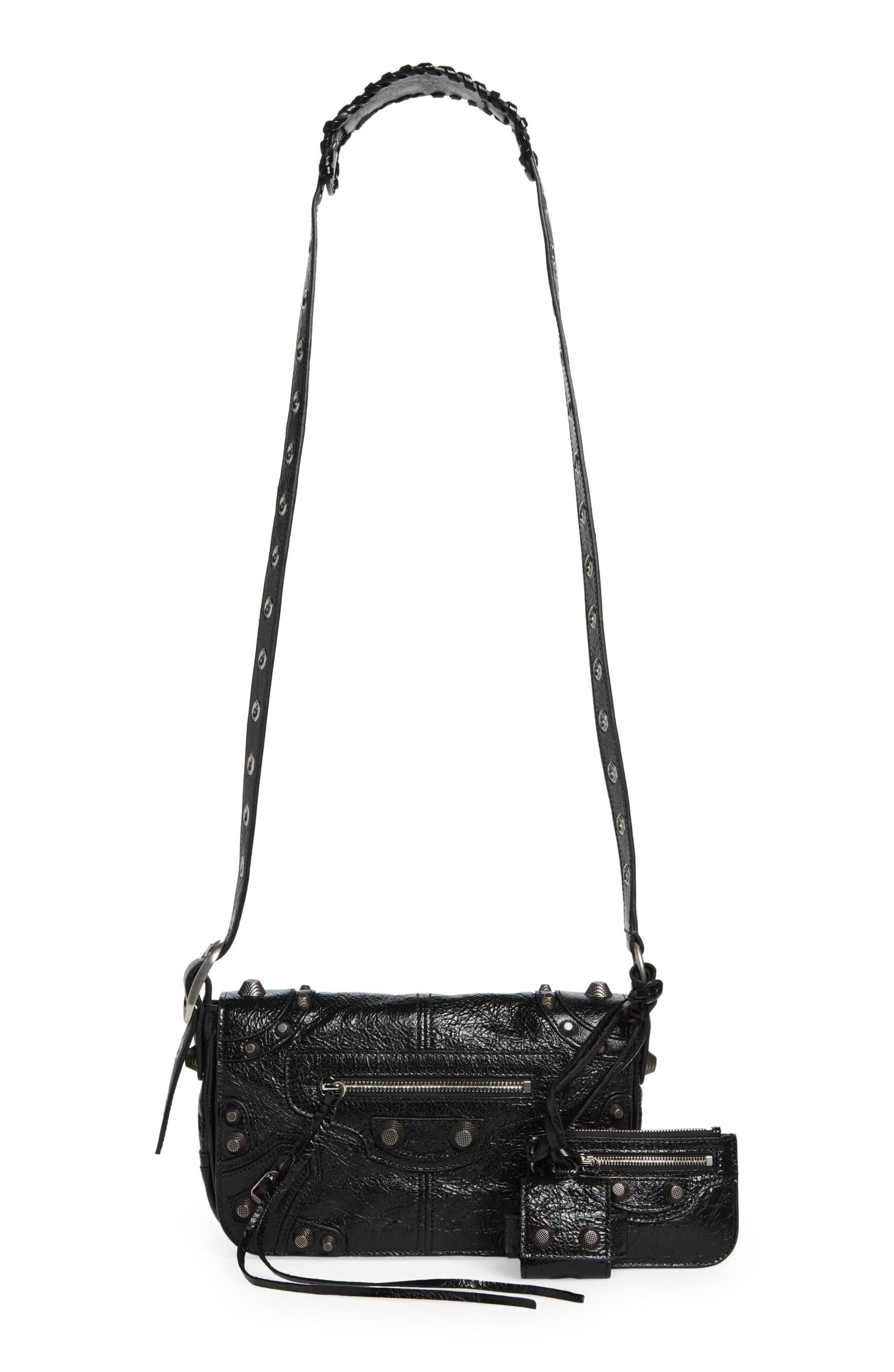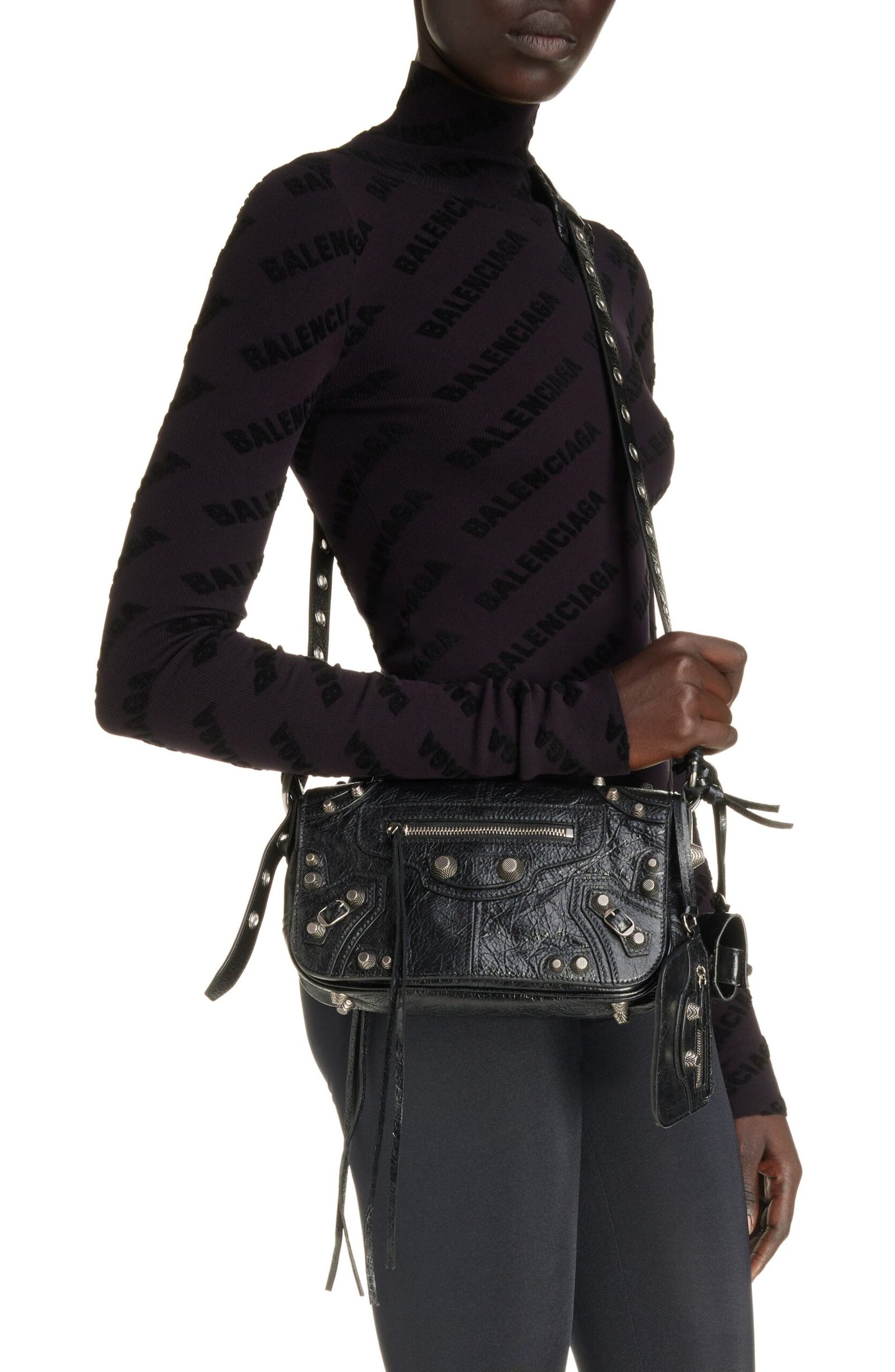 Radiate rock-‘n’-roll edge with this compact crossbody bag that pairs dark, textural leather with toothy zippers and signature Le Cagole hardware. Two removable pouches and tassel-tipped zips complete this street-style favorite with utilitarian ease.