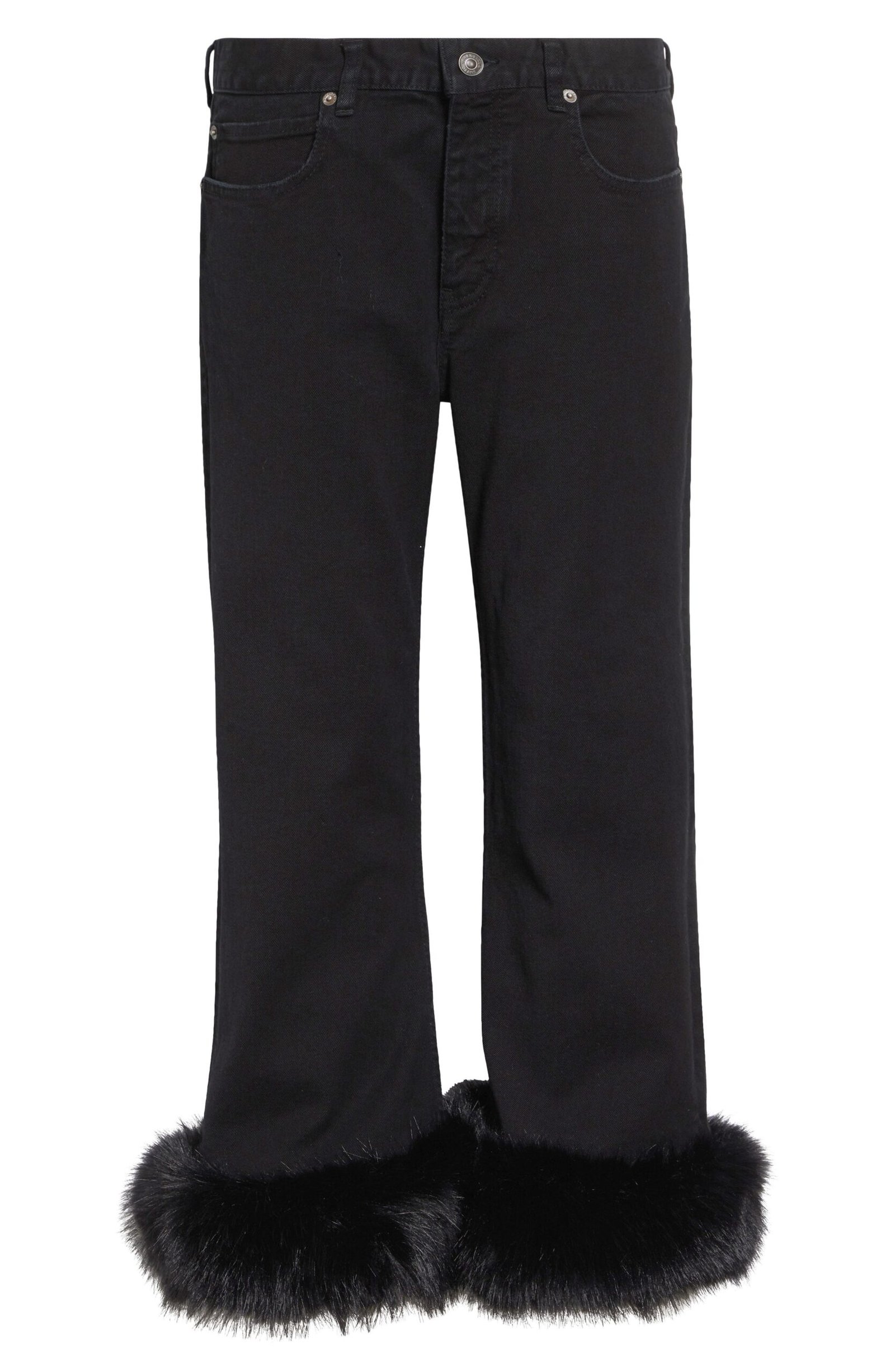 Balenciaga Faux Fur Trim Crop Flare Jeans