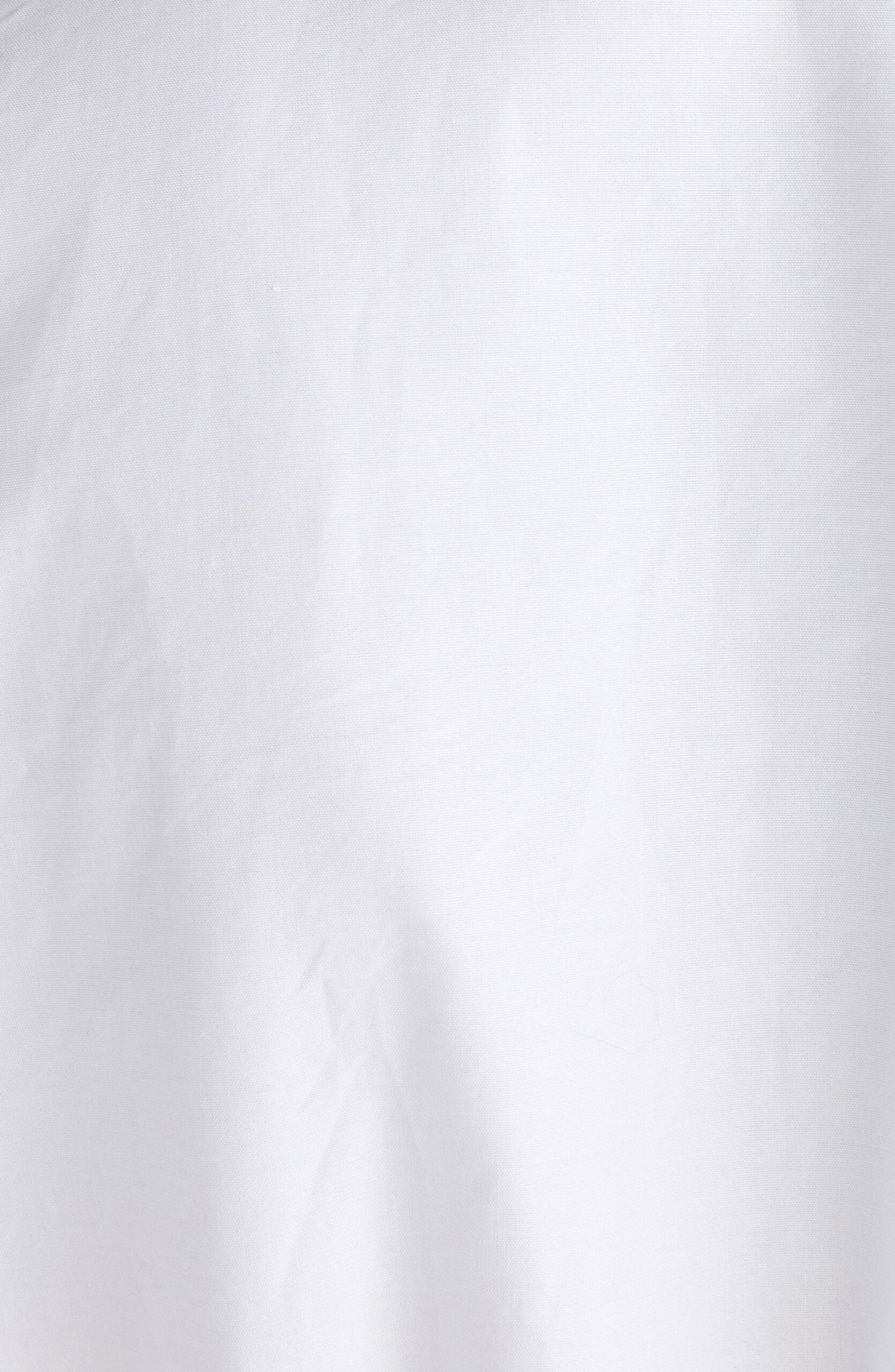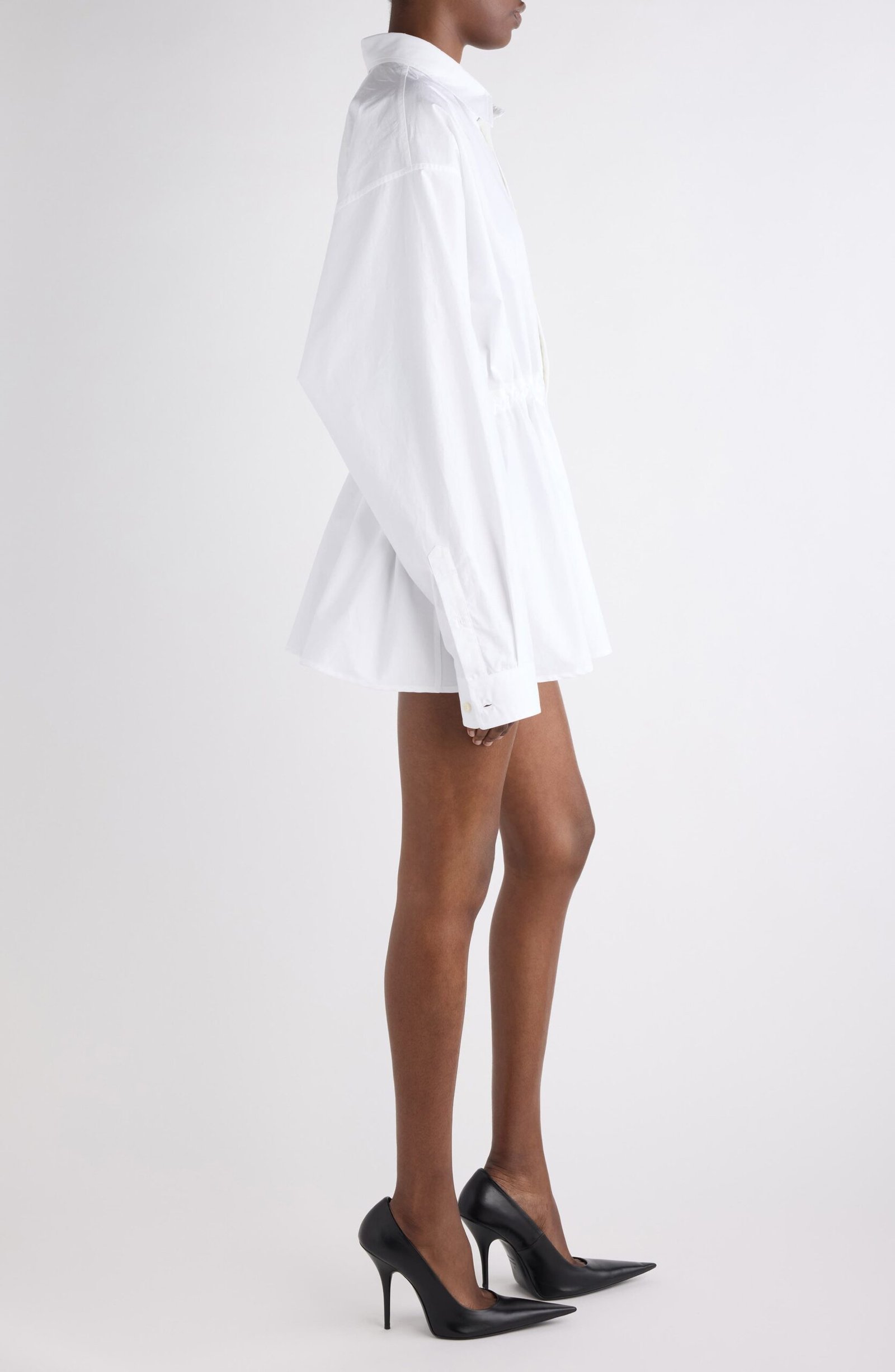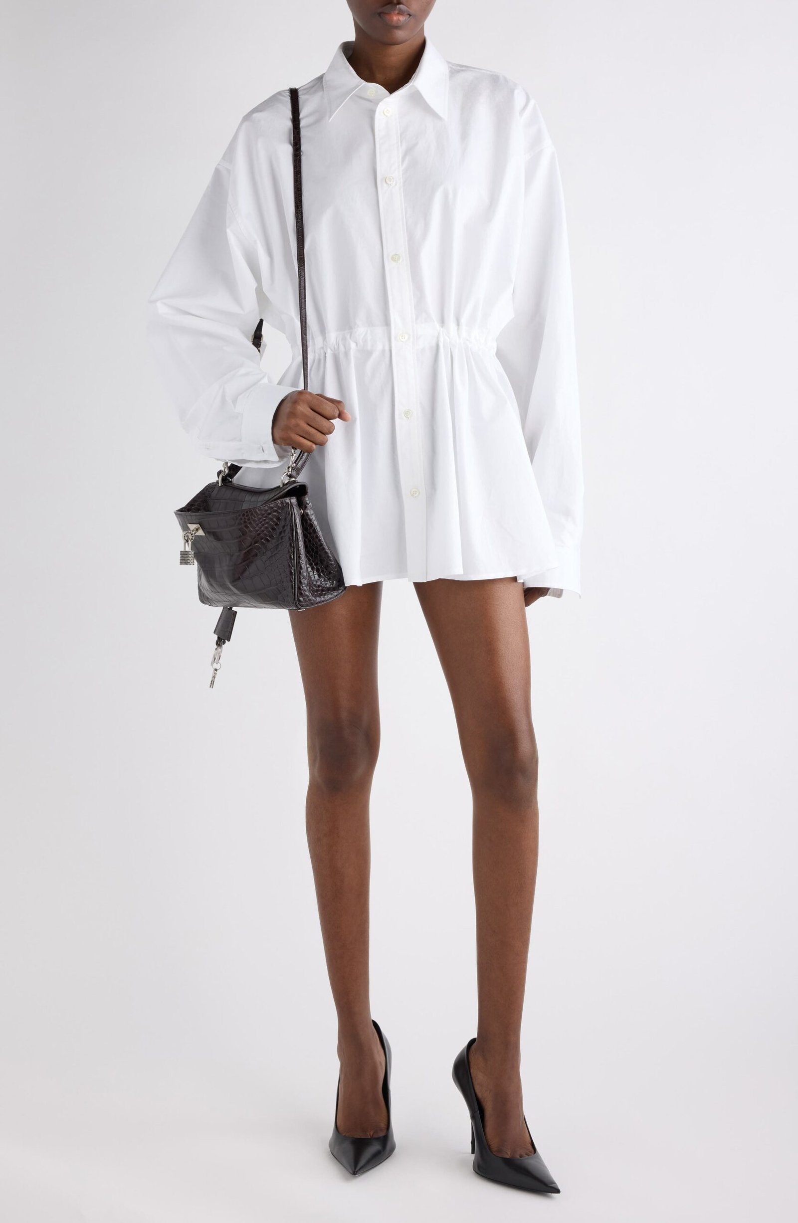 The label revisits the iconic hourglass shape with this cotton-poplin shirt that deftly channels the exaggerated tailoring of master courtier Cristóbal Balenciaga.