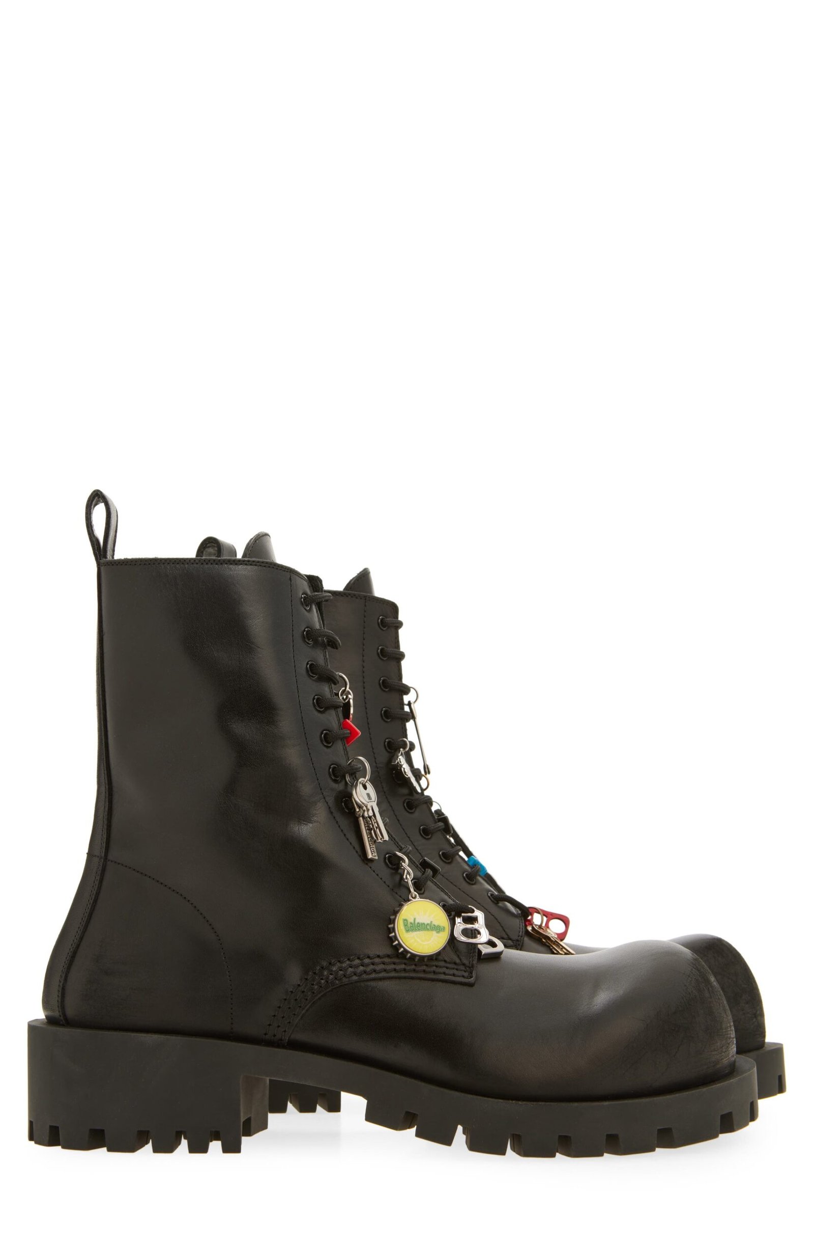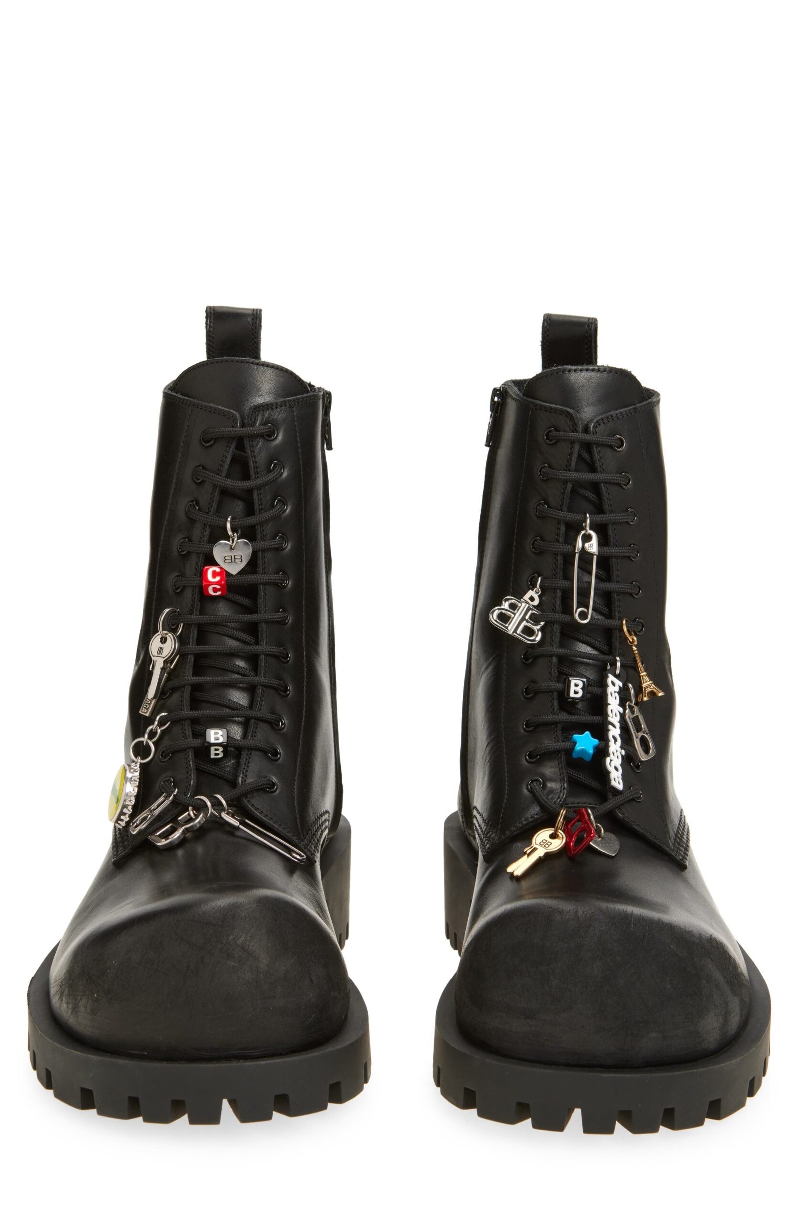Balenciaga’s new Hummer boot goes for a fashion-forward aesthetic with a bulbous toe, an eclectic assemblage of charms detailing the laces and an uberchunky sole.