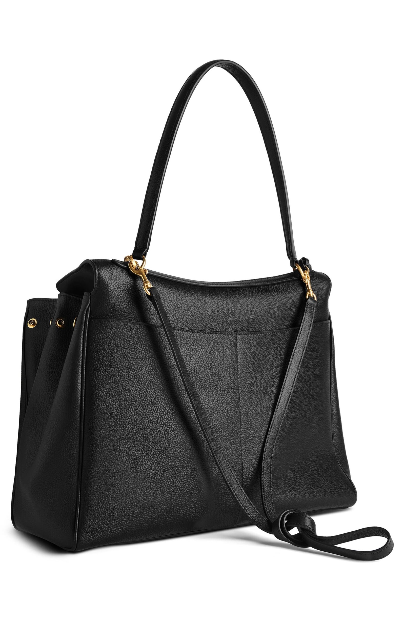 The epitome of understated luxury, this runway-featured shoulder bag crafted of grained calfskin features a slouchy silhouette that’s adjustable with snaps at the gussets.