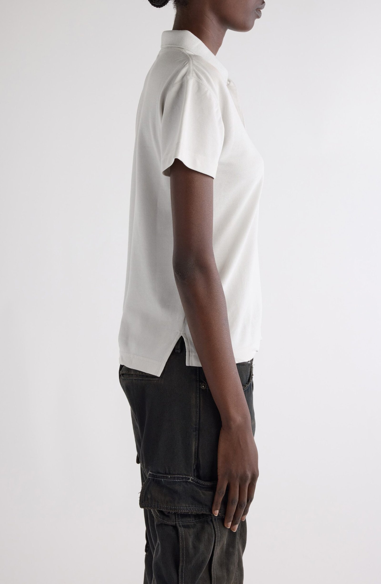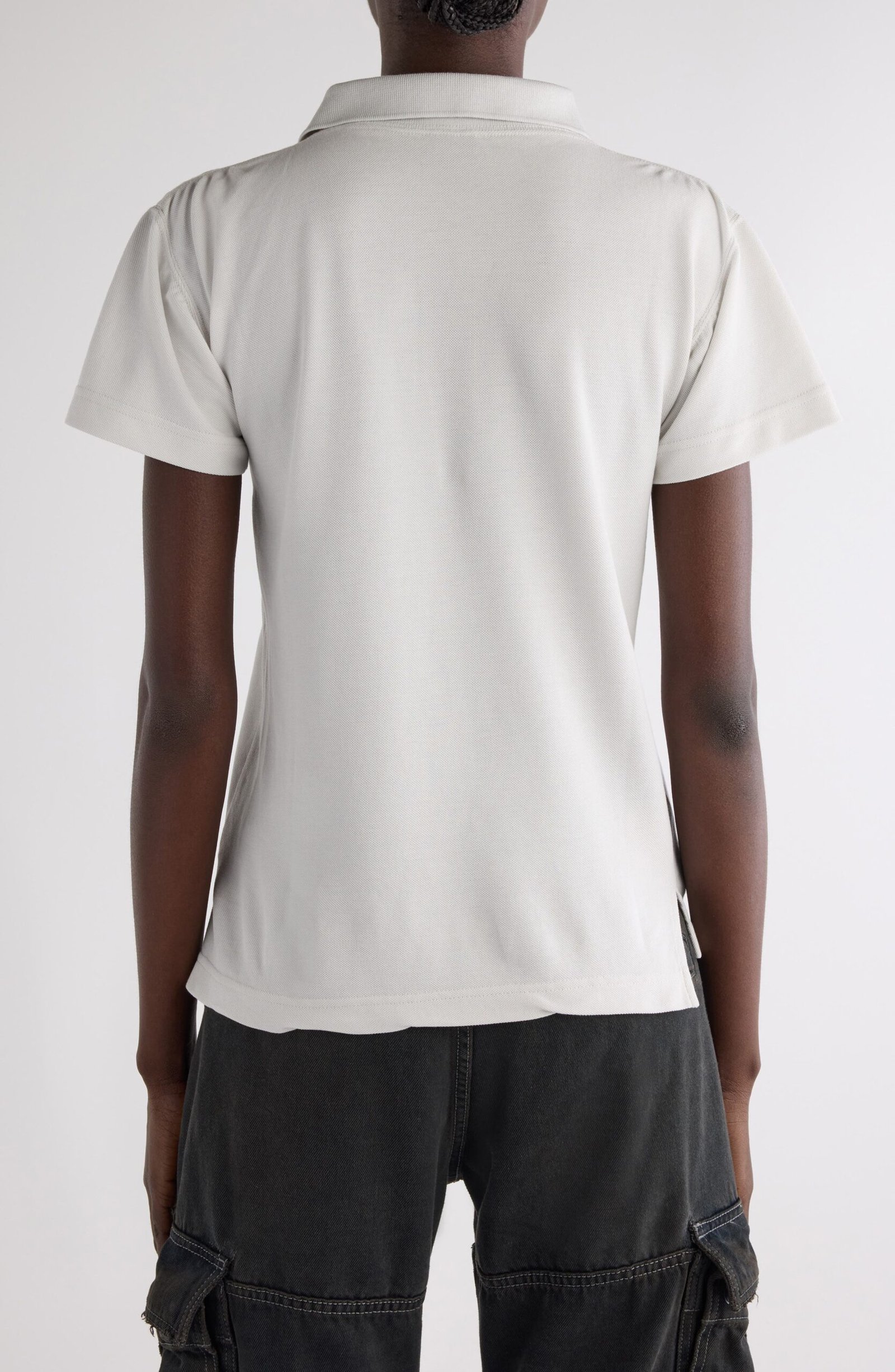 Laurel embroidery hints at preppy provenance on this fitted cotton-piqué polo, but even collegiate classics turn subversive under Demna’s supervision—hence the rumpled asymmetric hem.