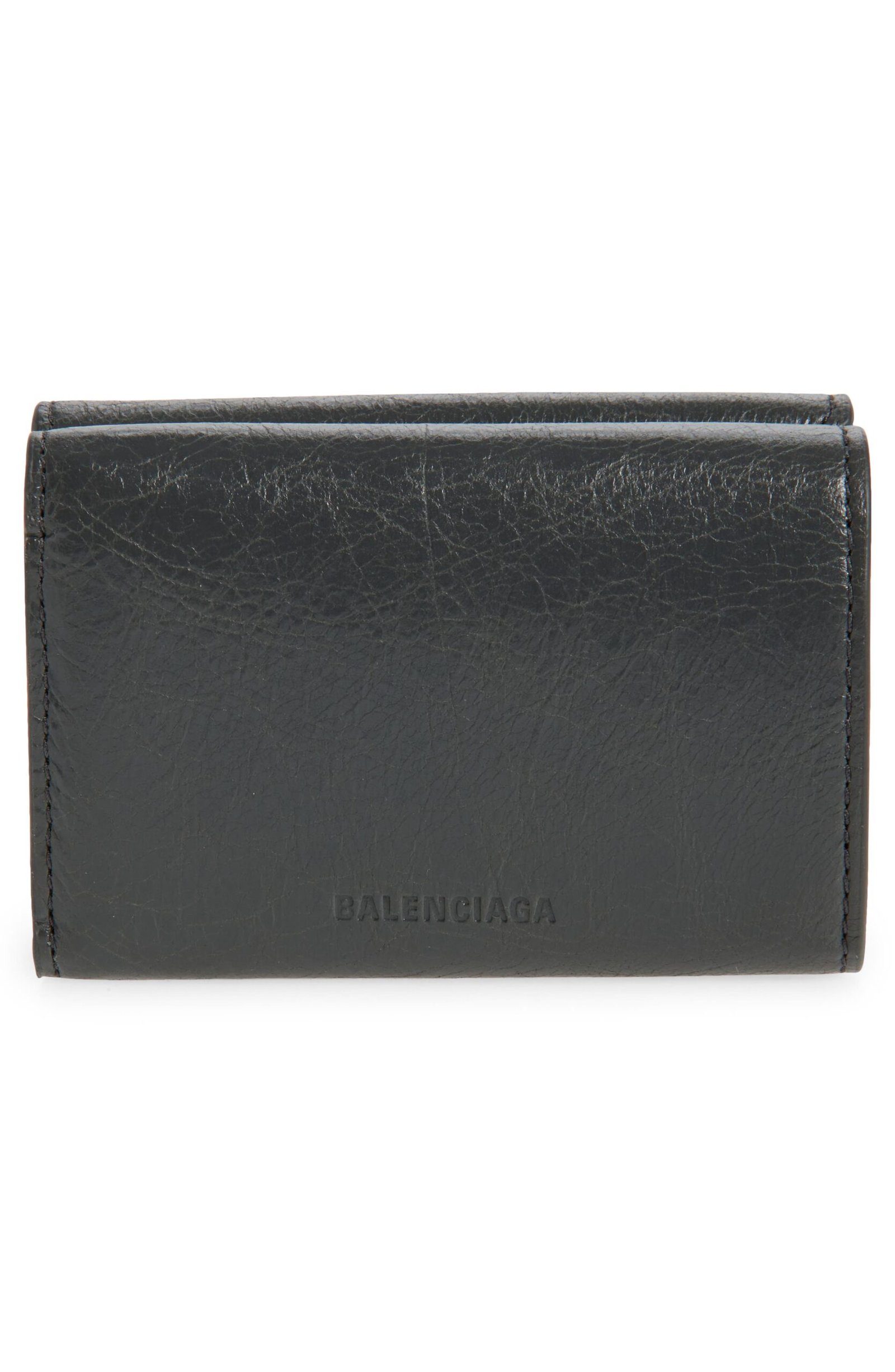Balenciaga relaunches its iconic Y2K line with this updated card case crafted from crinkled lambskin leather and detailed with matte hardware.