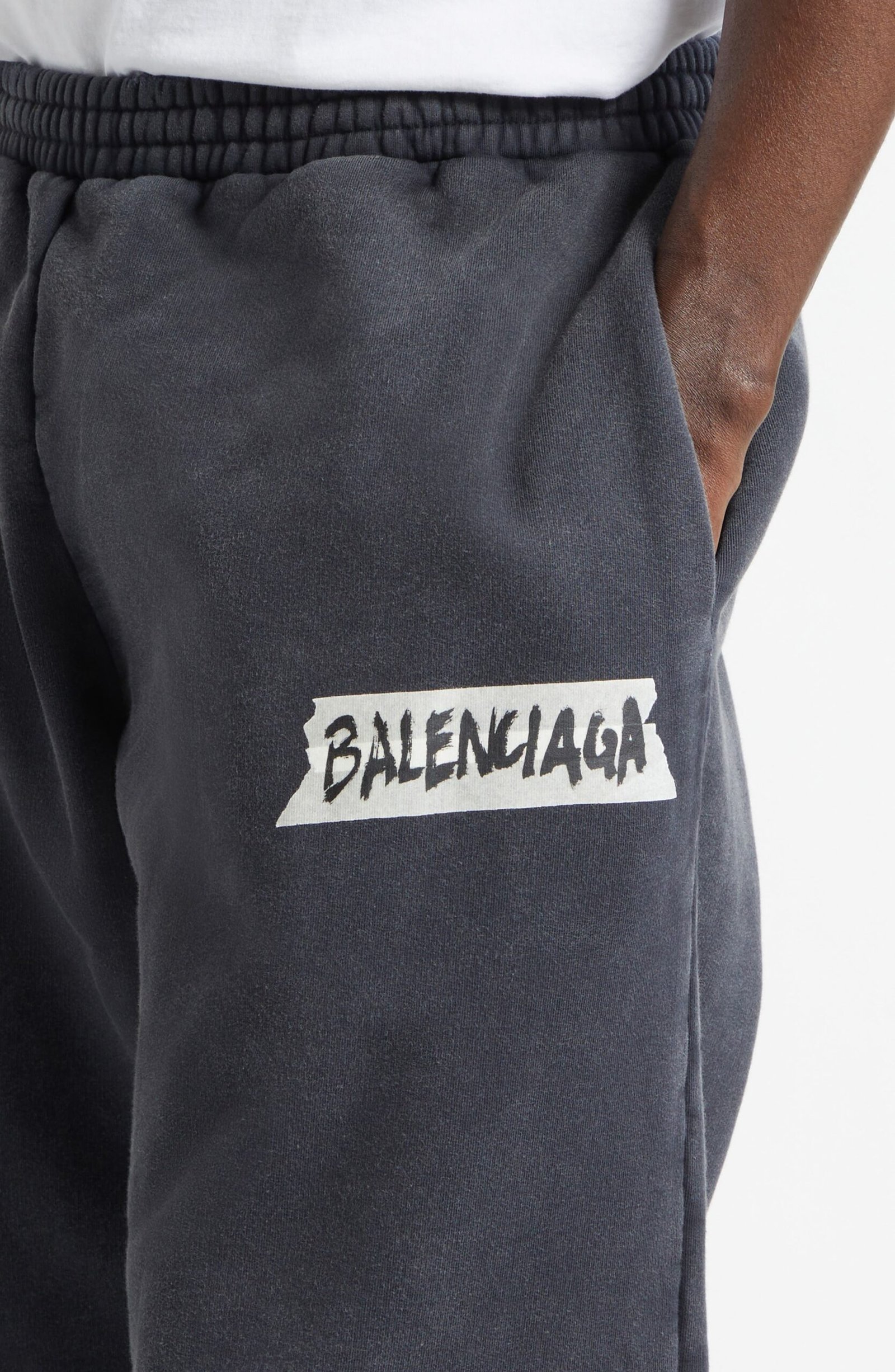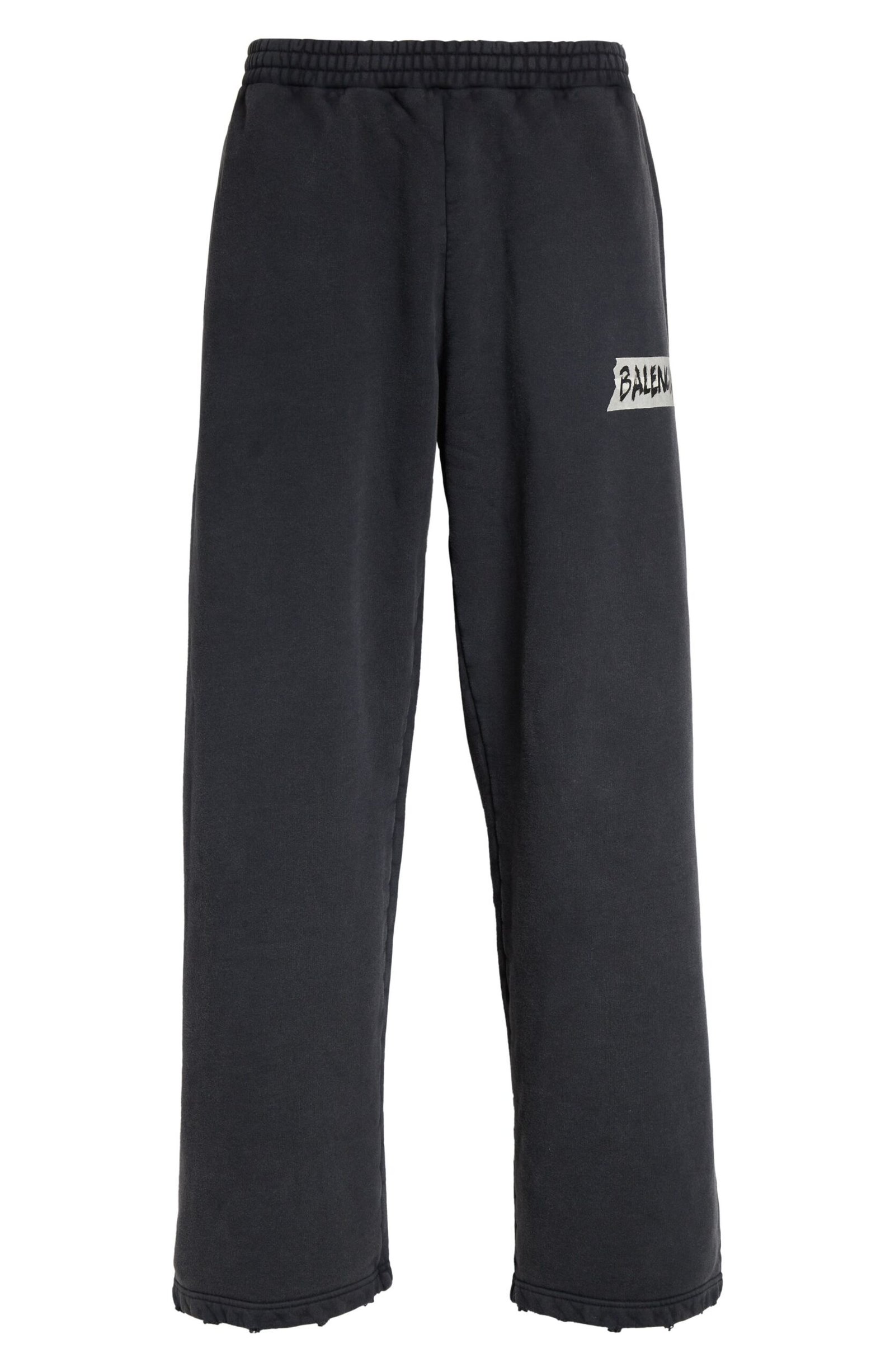 Balenciaga sticks with its subversive, DIY approach to branding with these heavyweight cotton-fleece sweatpants scrawled with a tape logo—a nod to the brand’s polarizing packing-ta