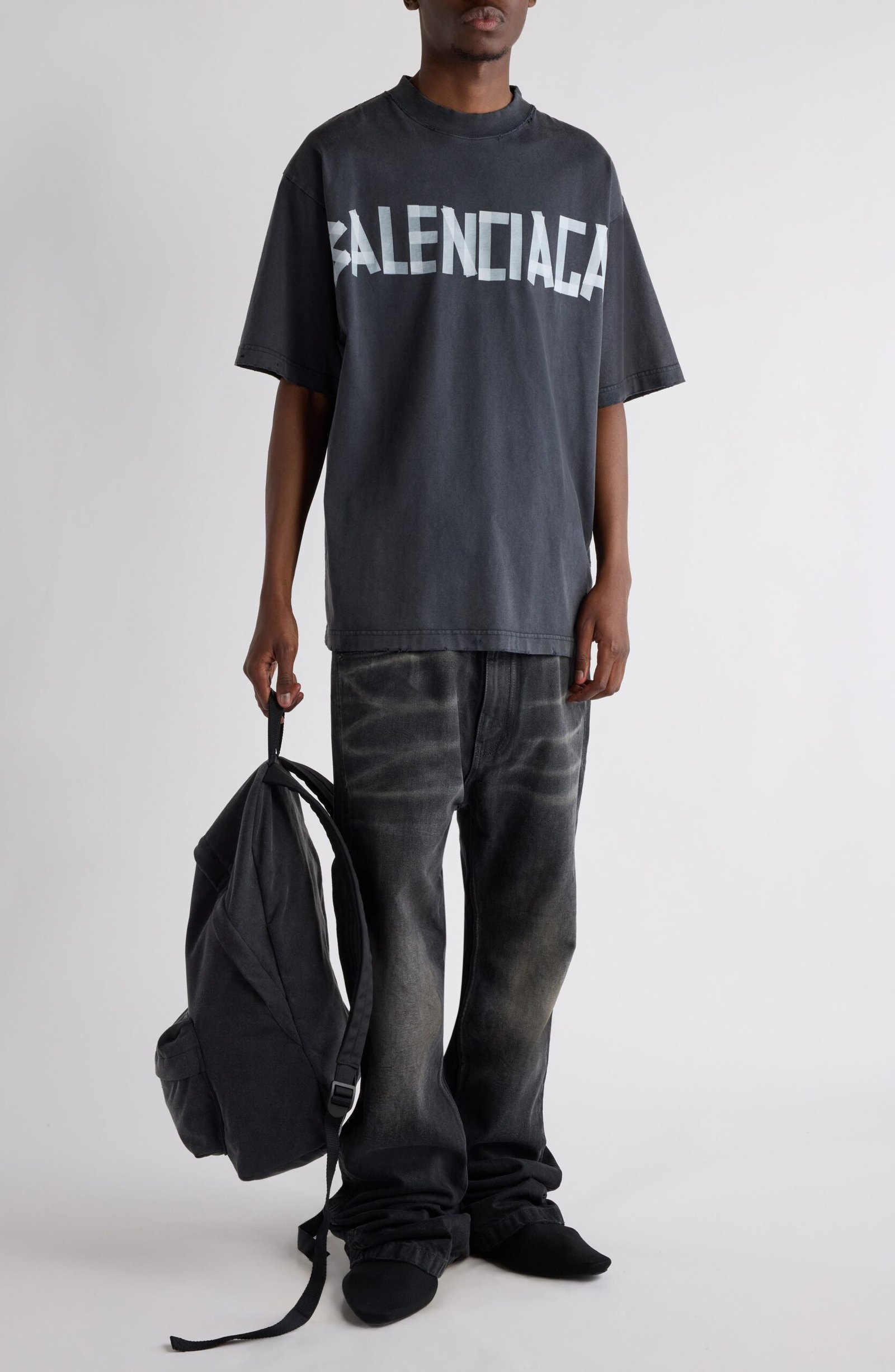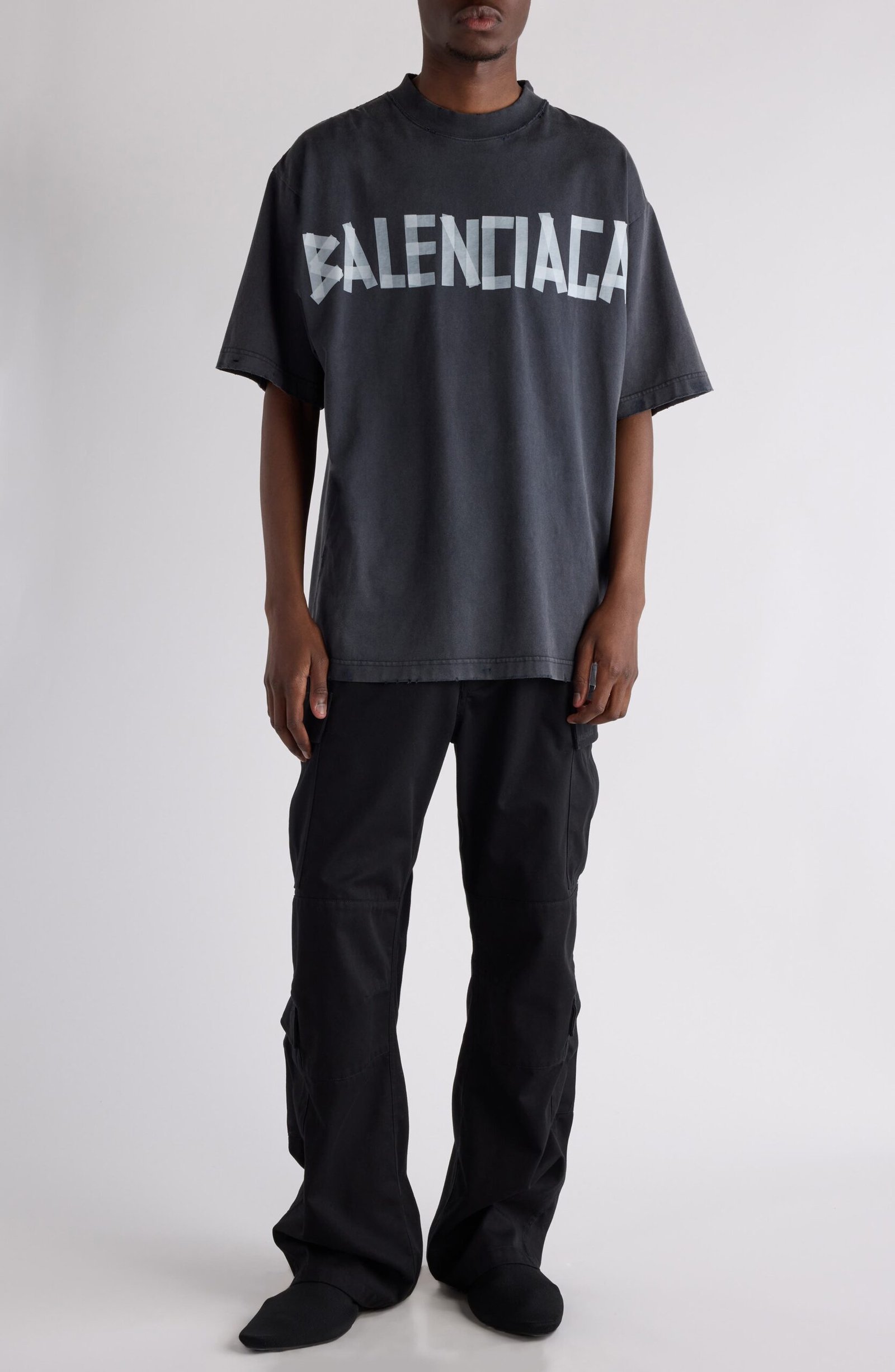 Demna sticks to his subversive, DIY approach in this washed-out and subtly distressed cotton T-shirt featuring dual Tape Type logos—riffs on Balenciaga’s polarizing packing-tape bracelet.