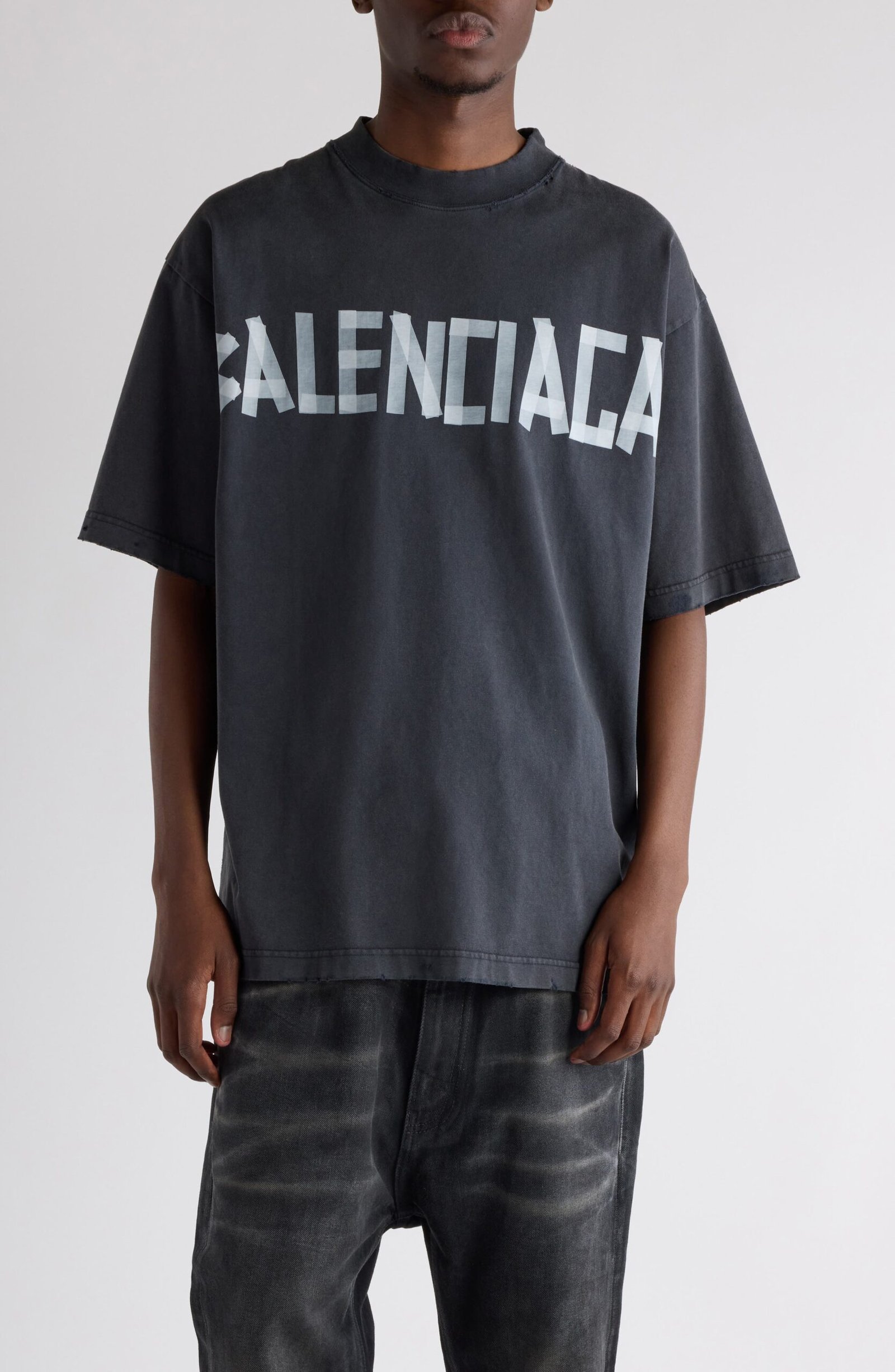 Demna sticks to his subversive, DIY approach in this washed-out and subtly distressed cotton T-shirt featuring dual Tape Type logos—riffs on Balenciaga’s polarizing packing-tape br