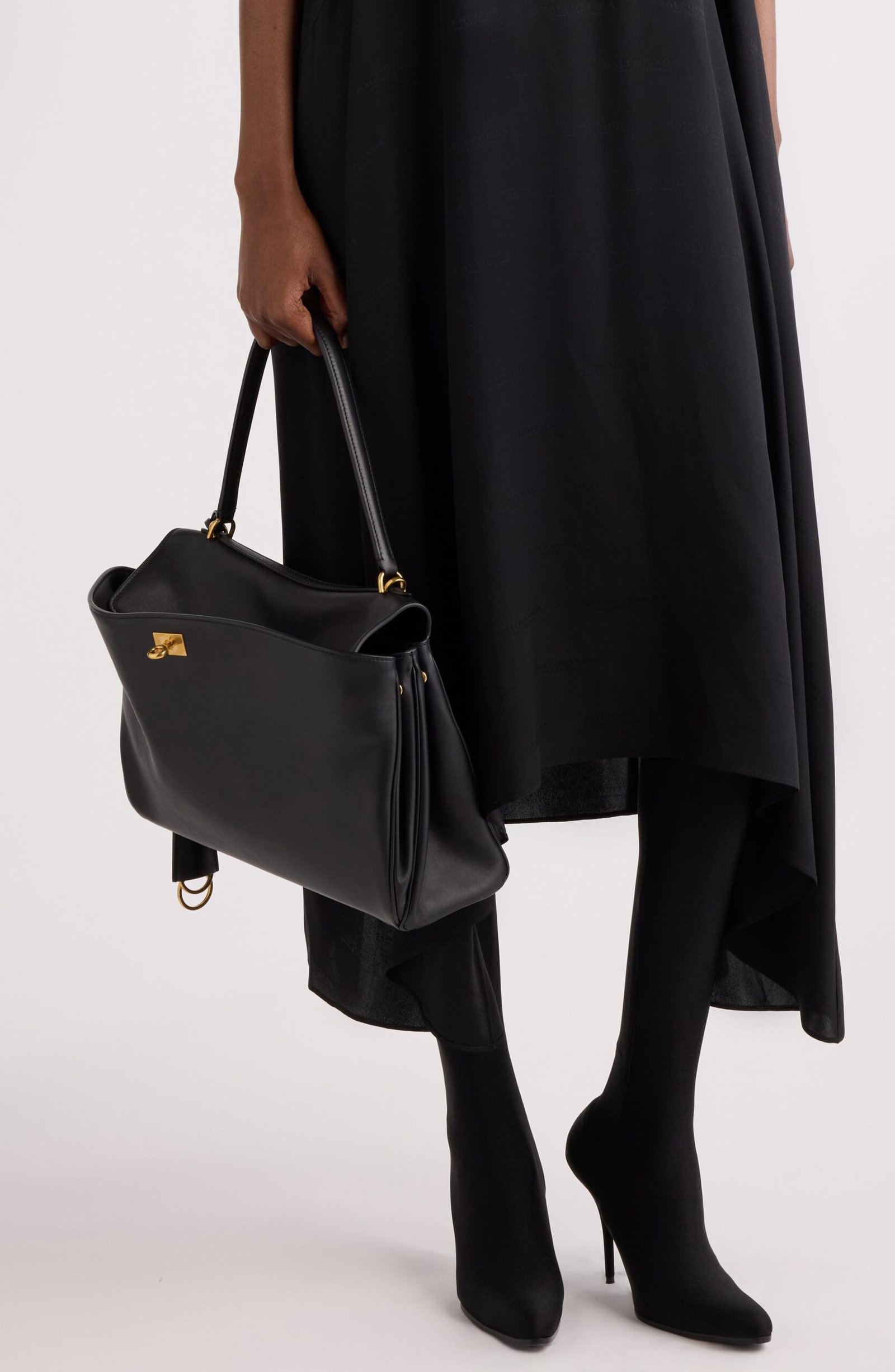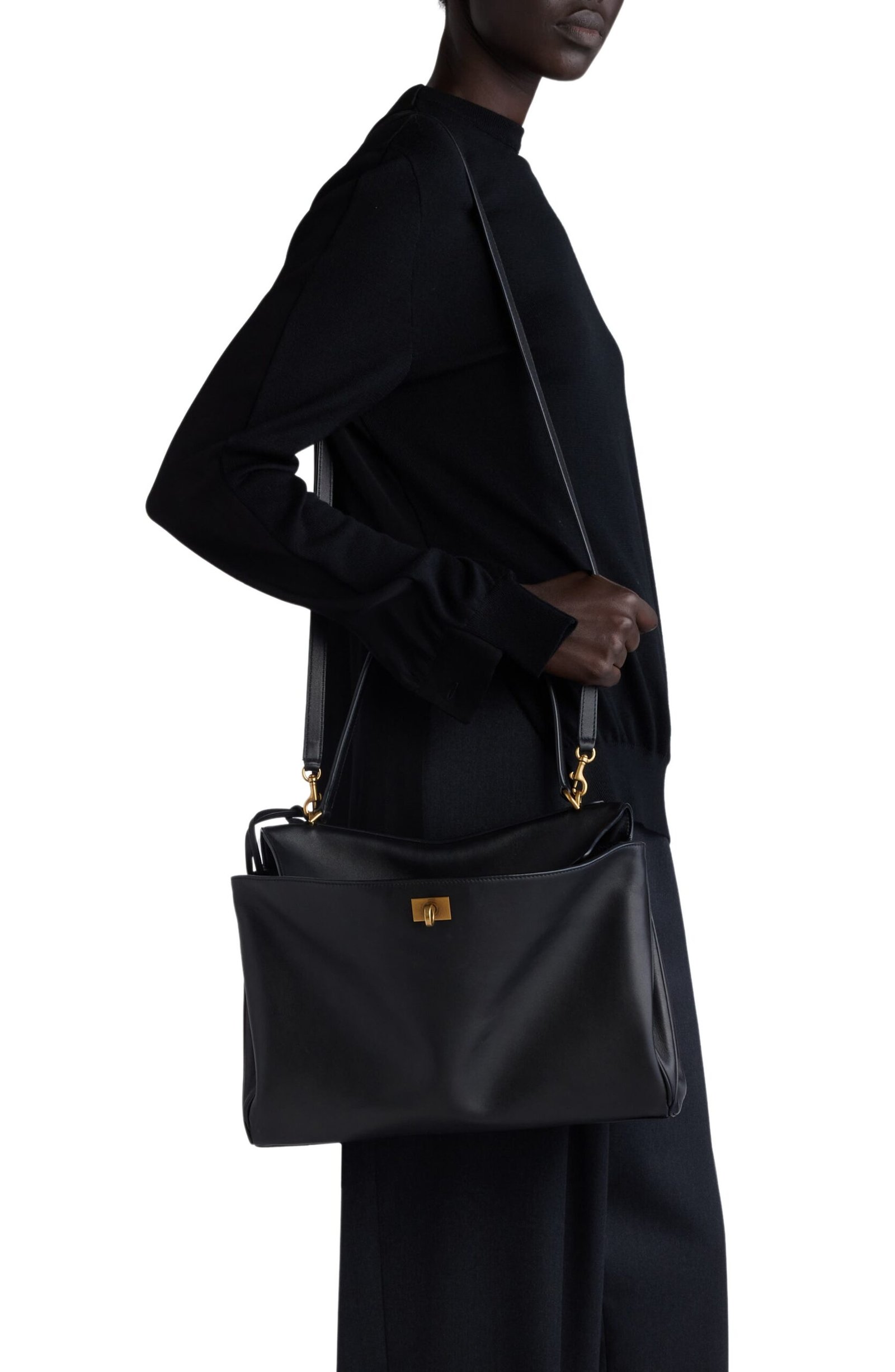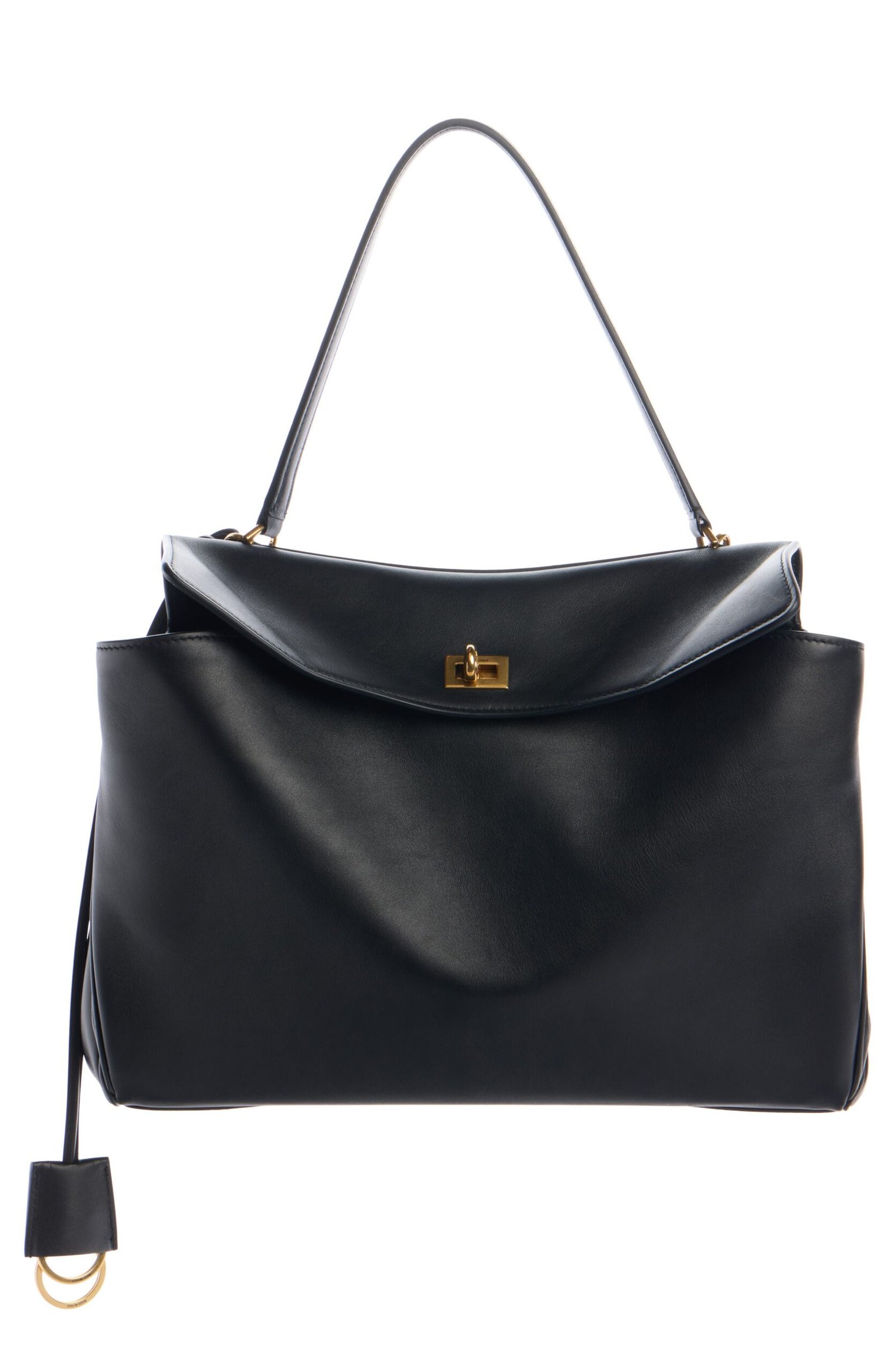 The epitome of understated luxury, this top-handle bag crafted of supple calfskin leather features a slouchy silhouette with a two-position flap closure.