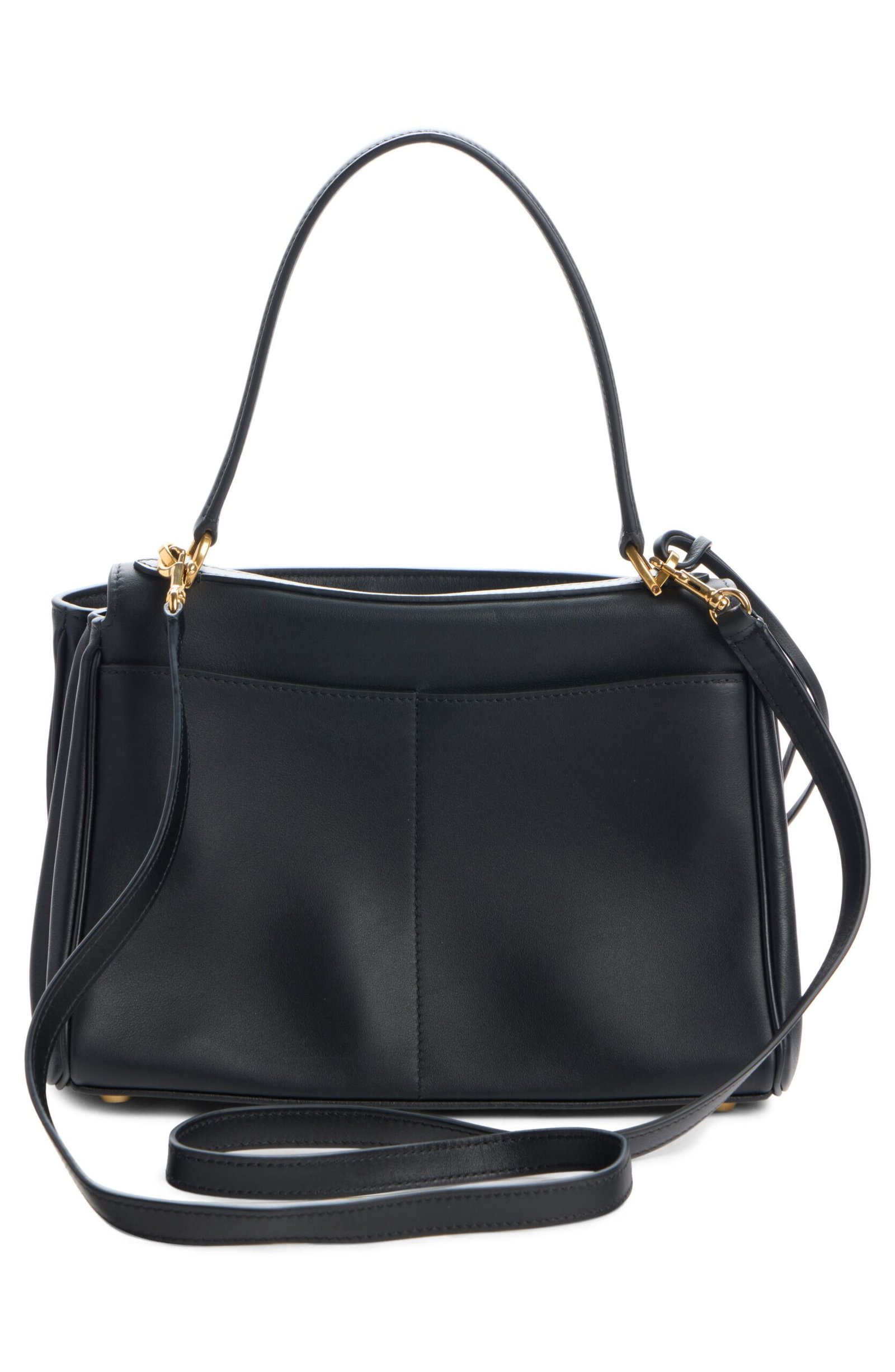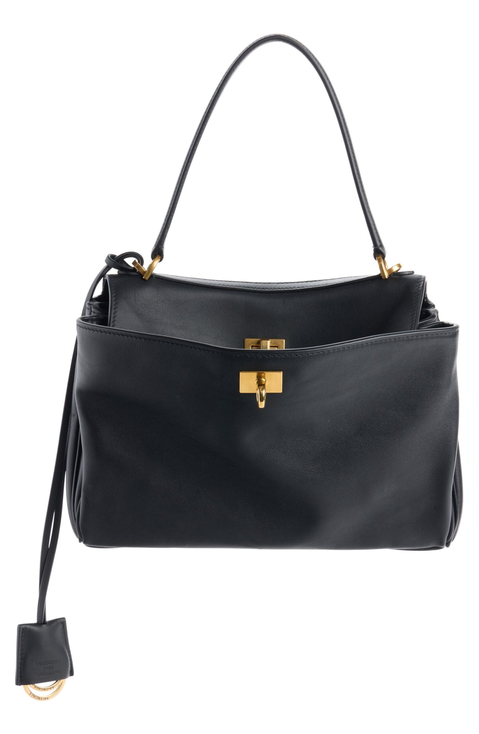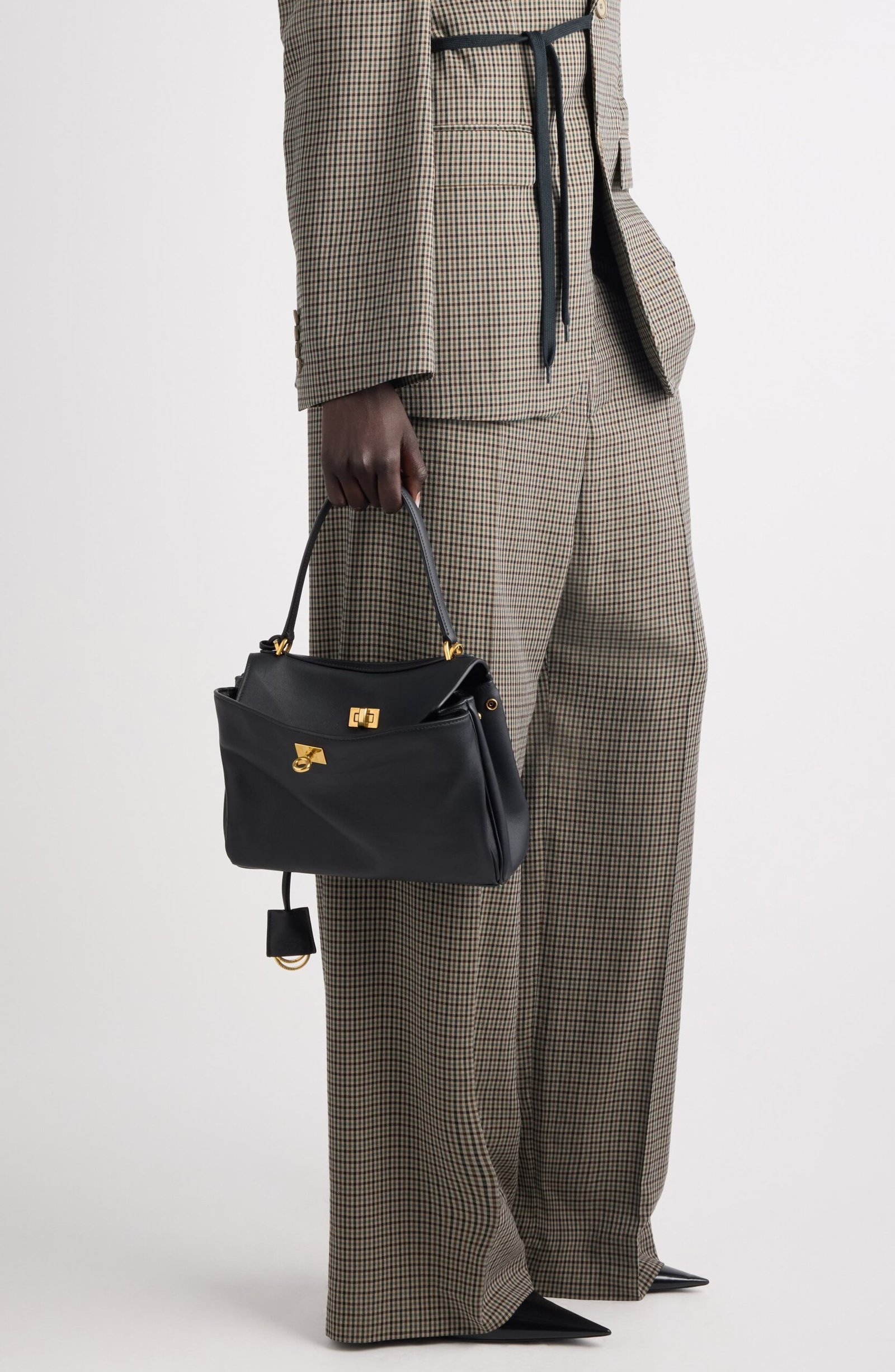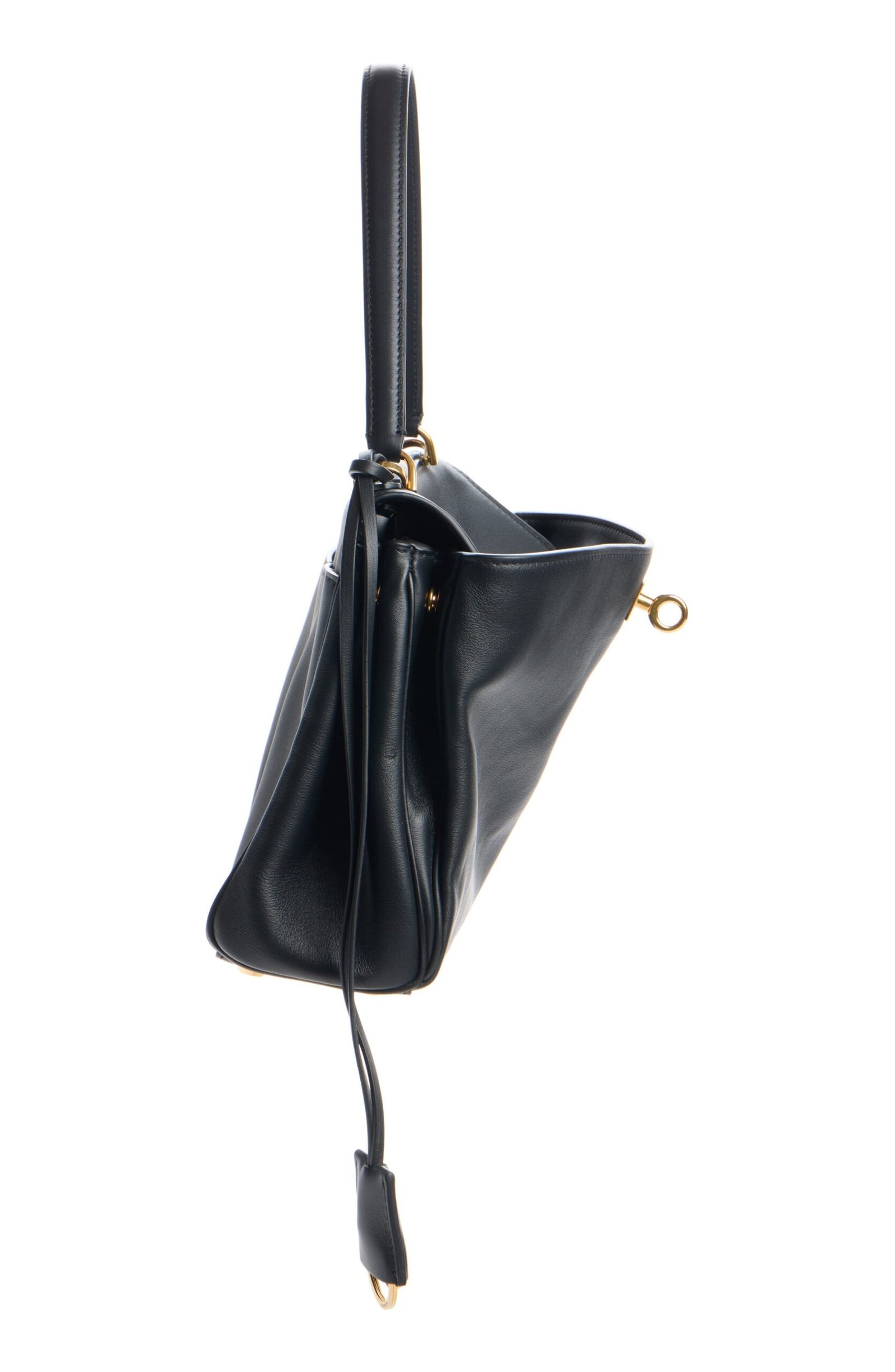 The epitome of understated luxury, this top-handle bag crafted of supple calfskin features a slouchy silhouette that’s adjustable with side snaps.