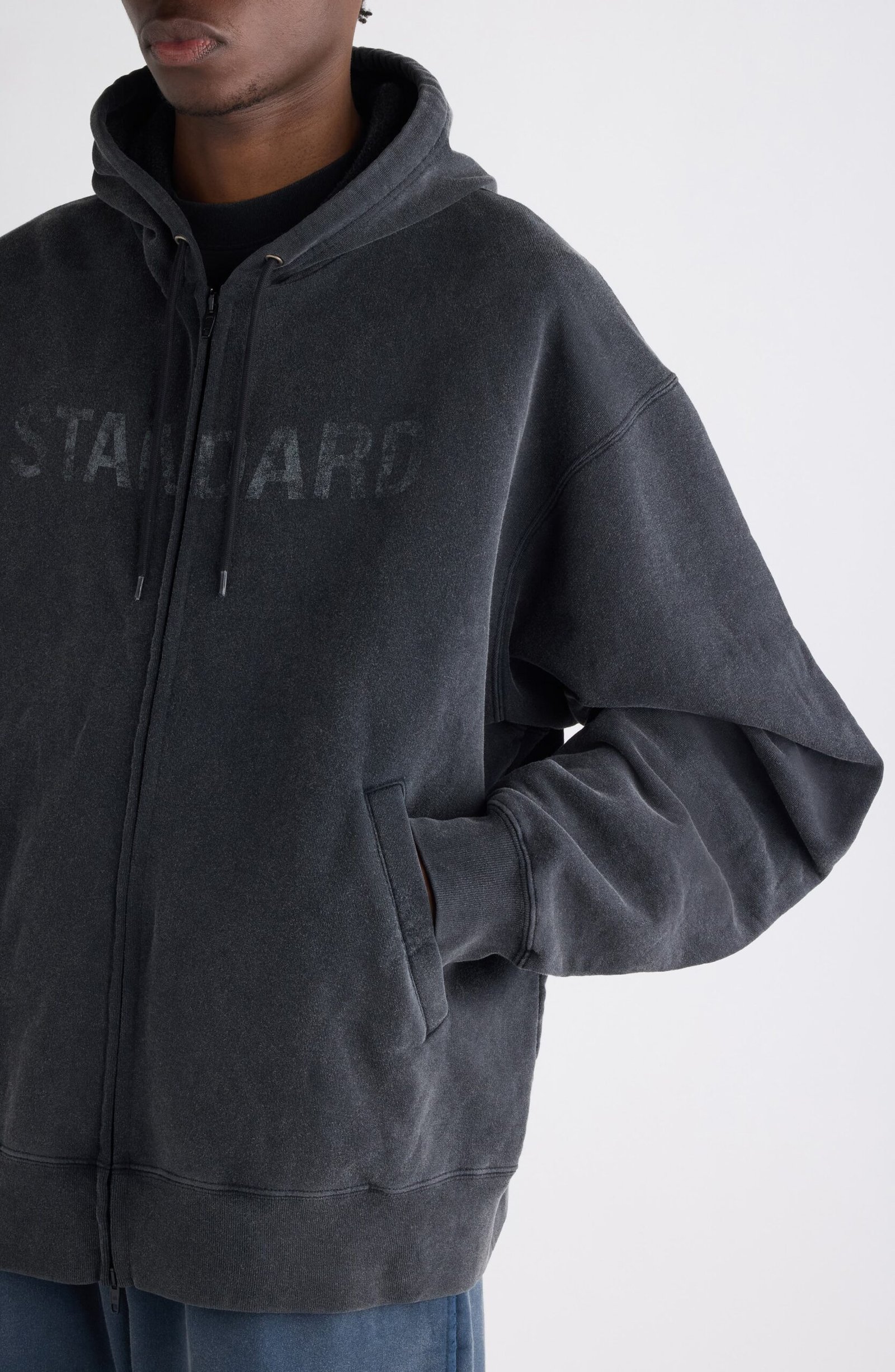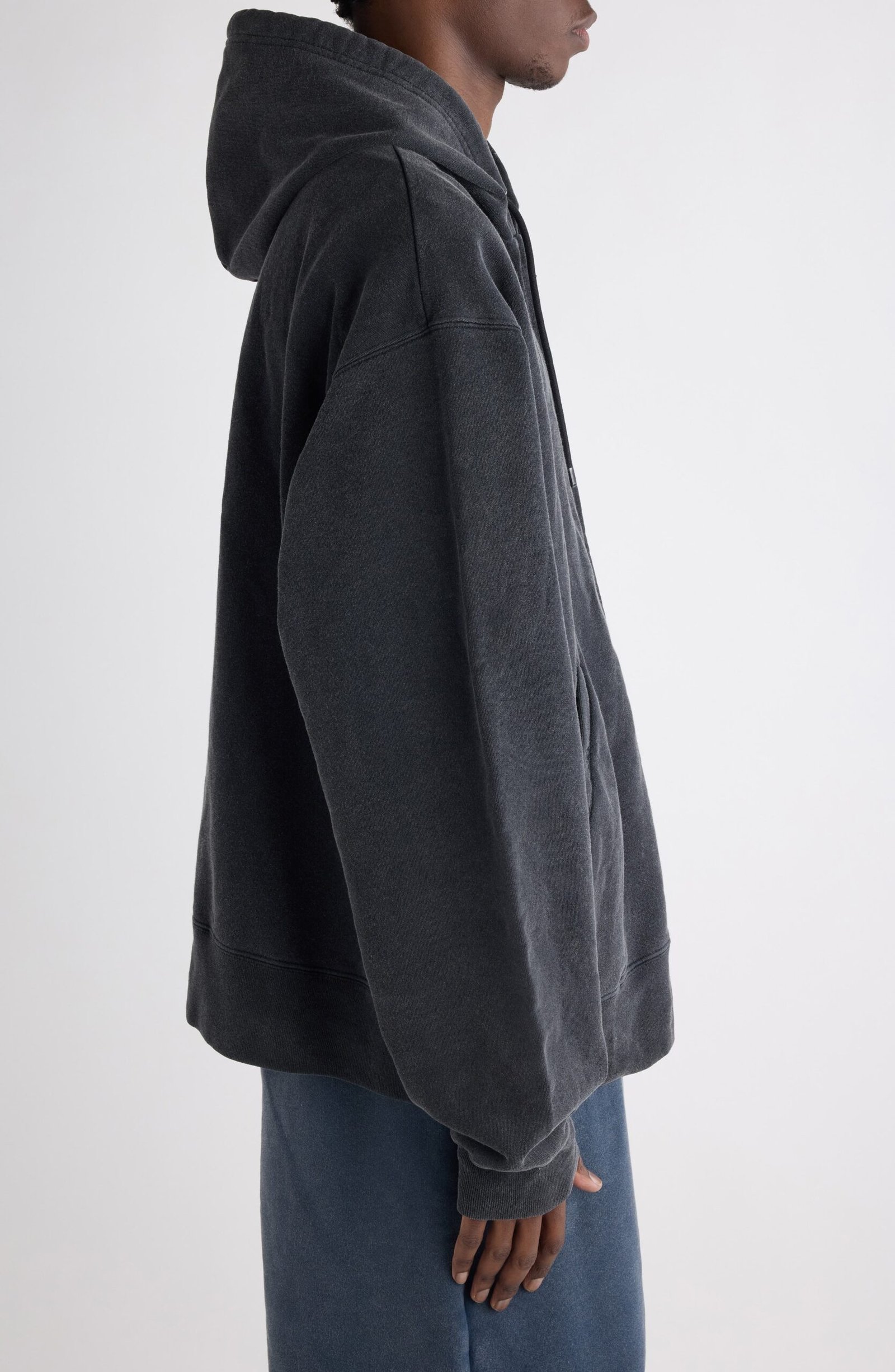 Designed for a throw-on-and-go rhythm, this cotton dry fleece hoodie lands with a generous drop and chalky fading that suggests years of wear yet still looks fresh.