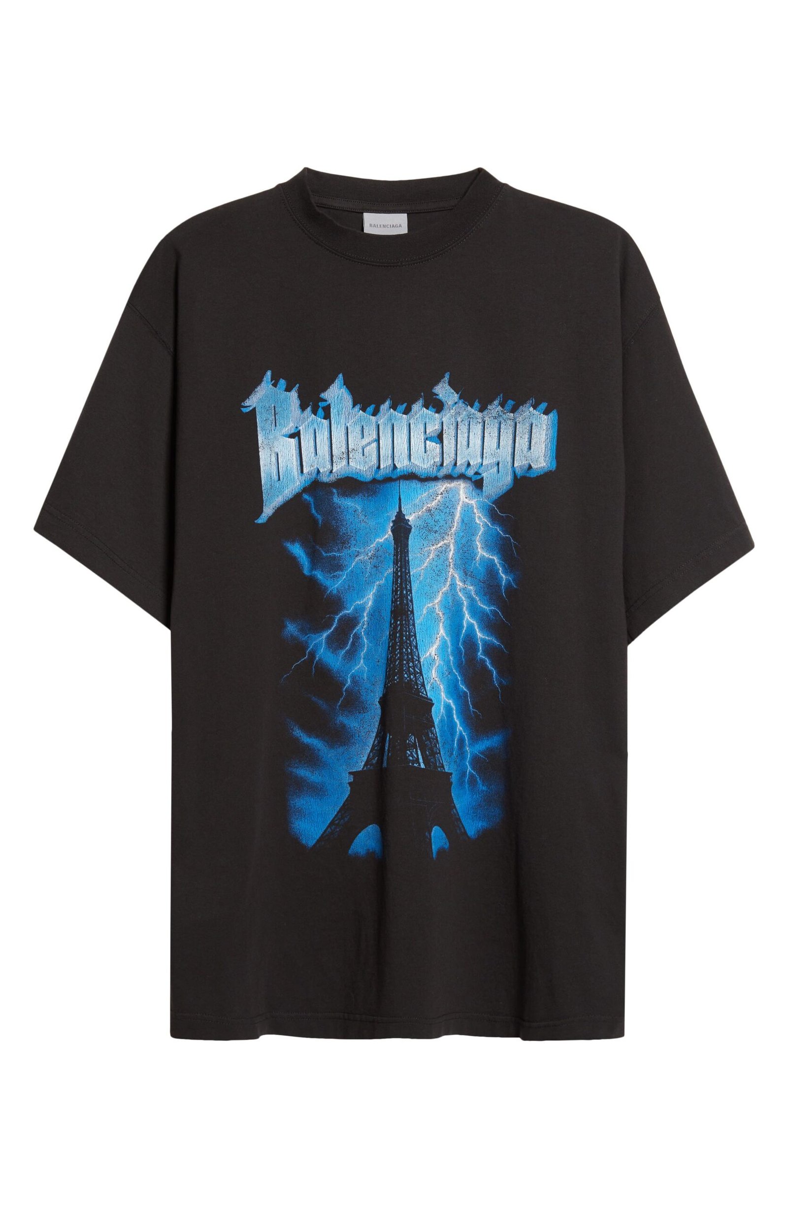 From Pierpaolo Piccioli’s Balenciaga debut—’The Heartbeat’—this oversized T‐shirt celebrates the maison’s Parisian soul with a lightning-struck depiction of the Eiffel Tower. It’s cut from signature dry cotton jersey, balancing soft structure with a weighty handfeel.