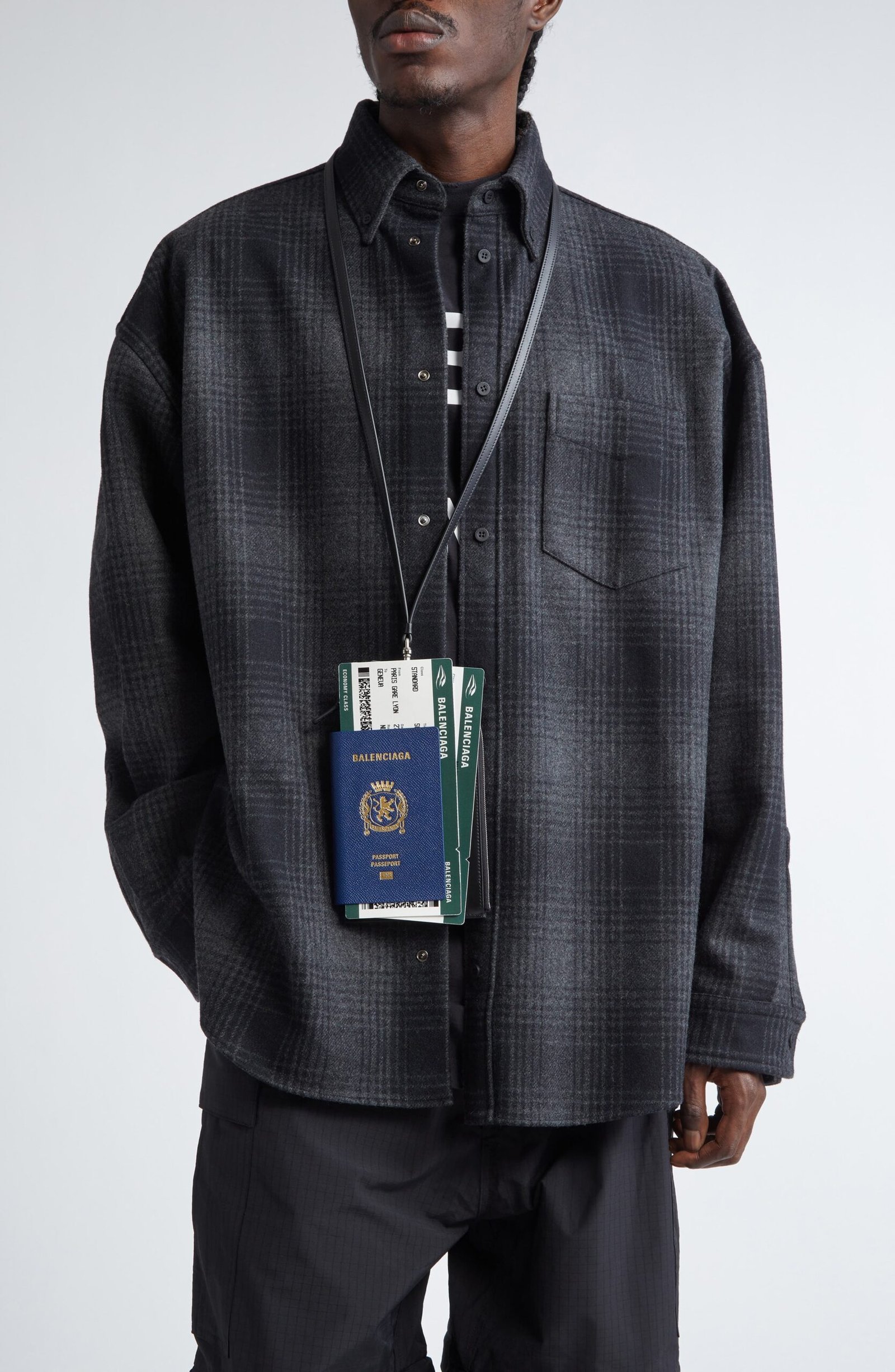 Sport the look of a glamorous jetsetter with this trompe l’oeil calfskin-leather phone case that was featured in Balenciaga’s spring ’24 runway show.