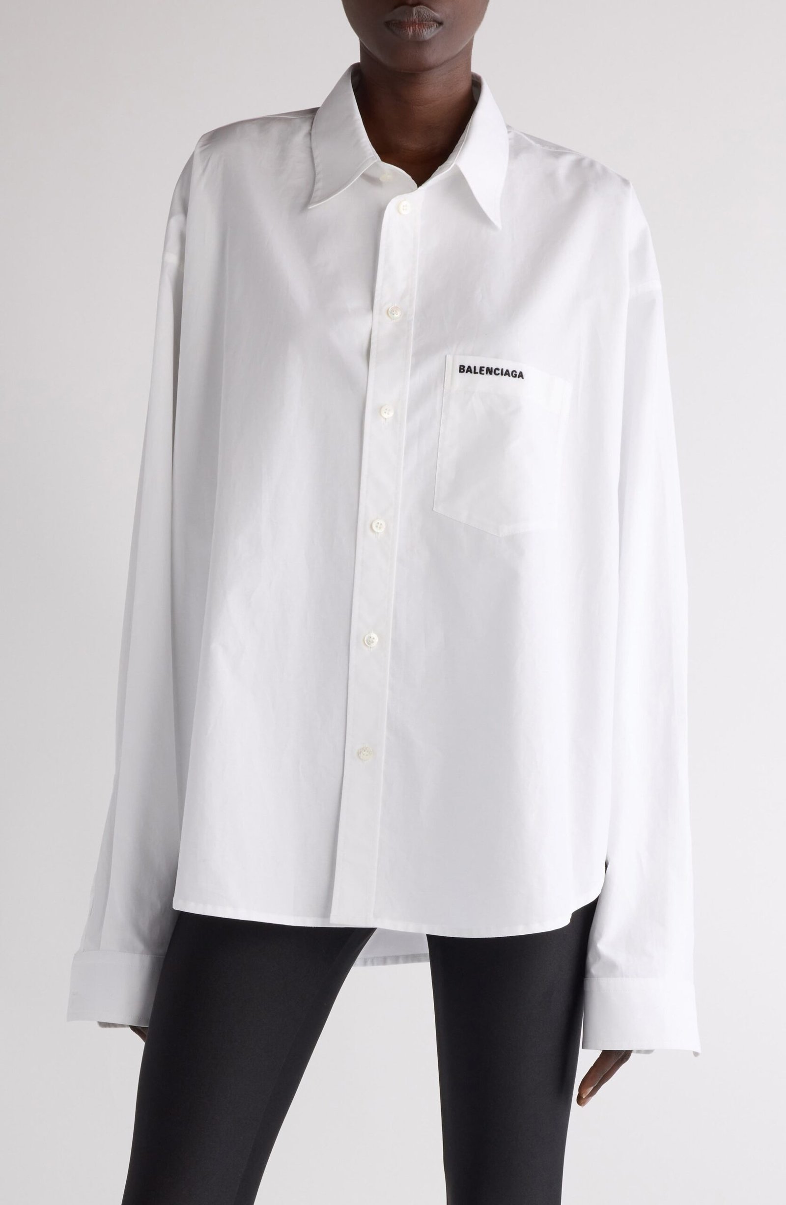 Known for his out-there designs, Demna shows he also has a knack for elevating the basics with this classic button-up tailored in a slightly oversized fit. Contrast logo embroidery details the chest pocket for a sophisticated pop of branding.