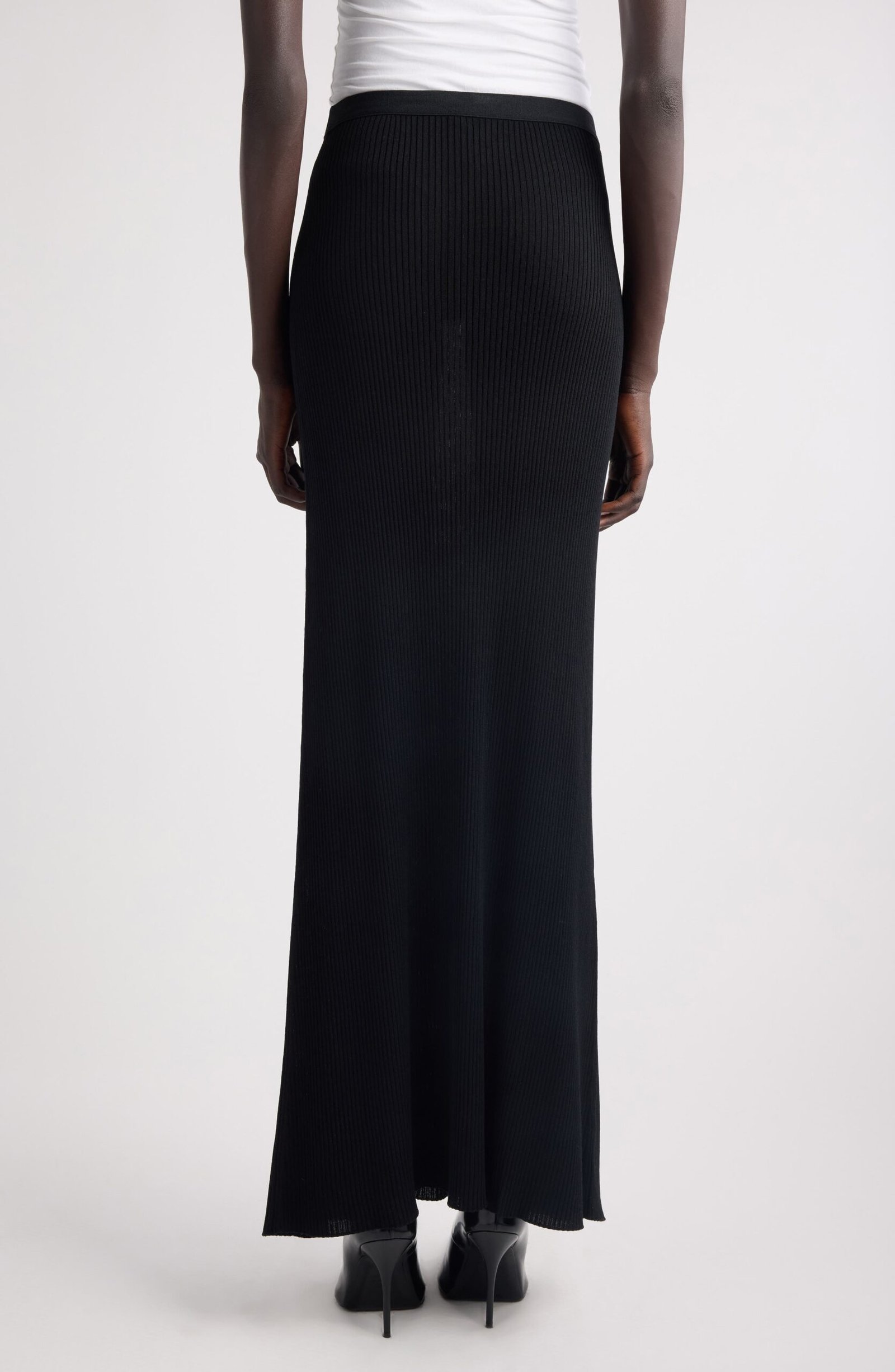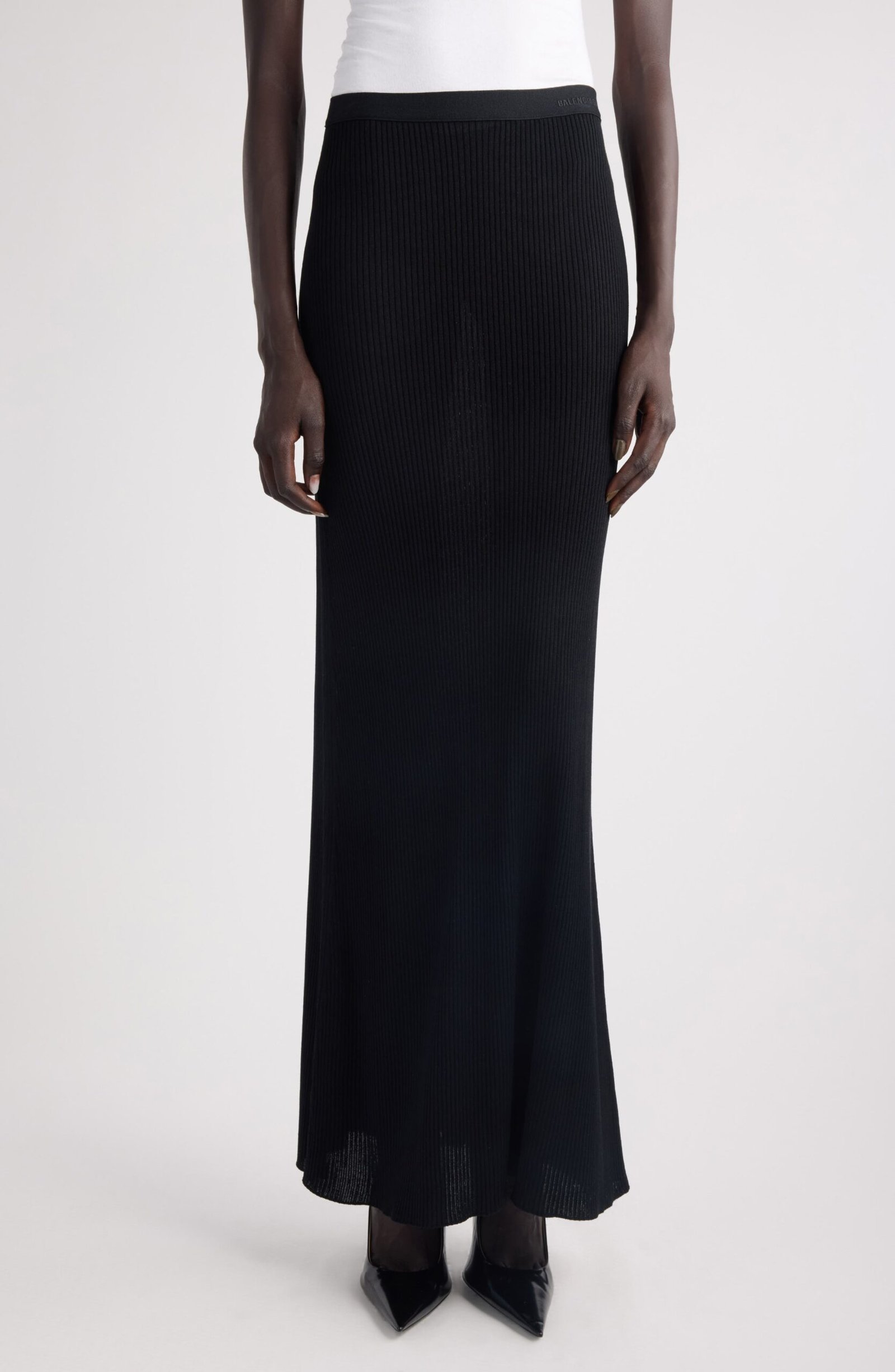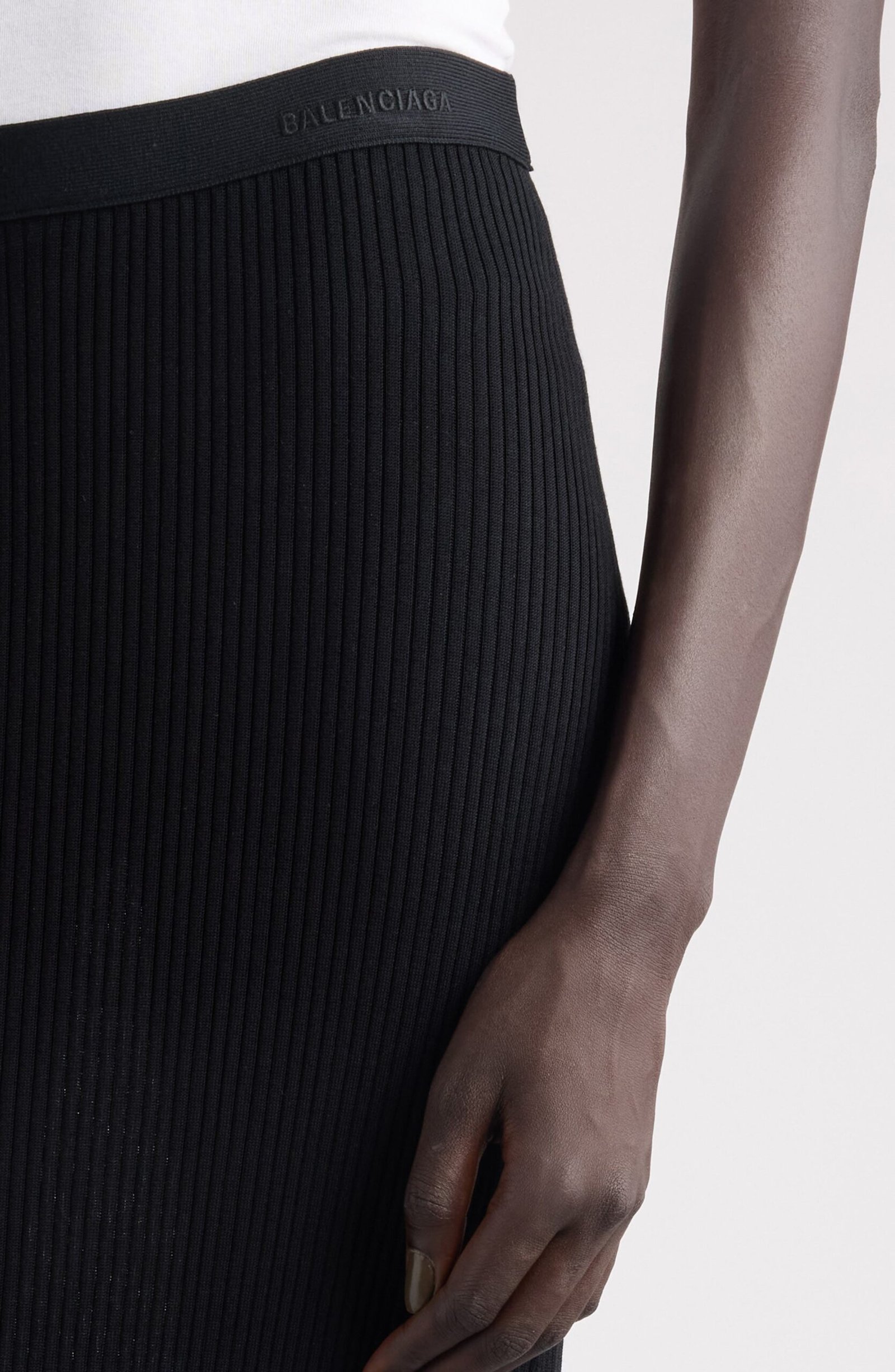 The secret is in the texture: sleek ribbing gives this footwear-grazing knit skirt a refined sense of structure while keeping the look fluid from waist to hem. An elastic waistband with logo embroidery seals it with a sporty signature and a wear-all-day fit.