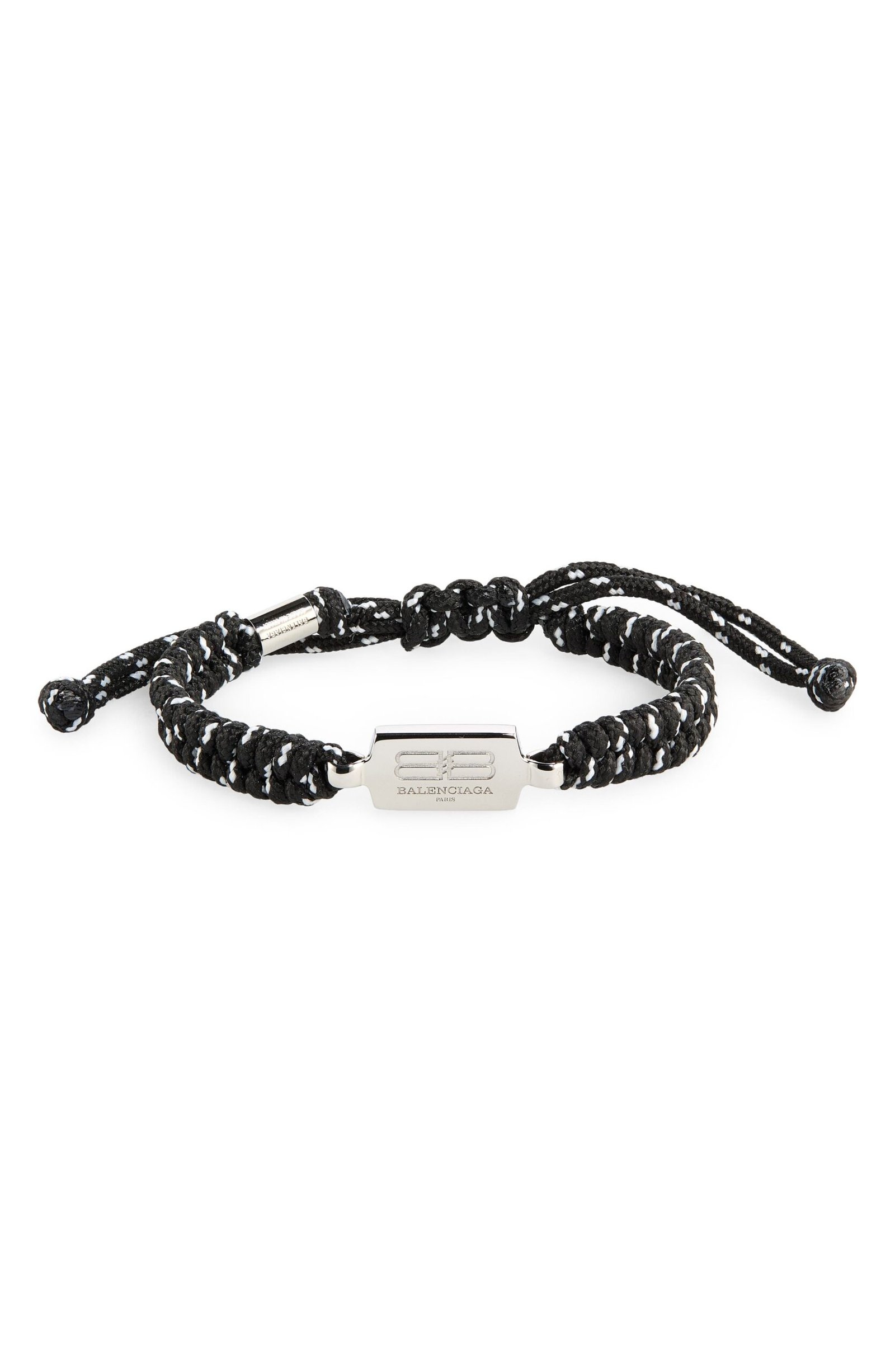 A silvertone charm engraved with the iconic BB logo centers this friendship-inspired braided-cord bracelet that adjusts to fit.