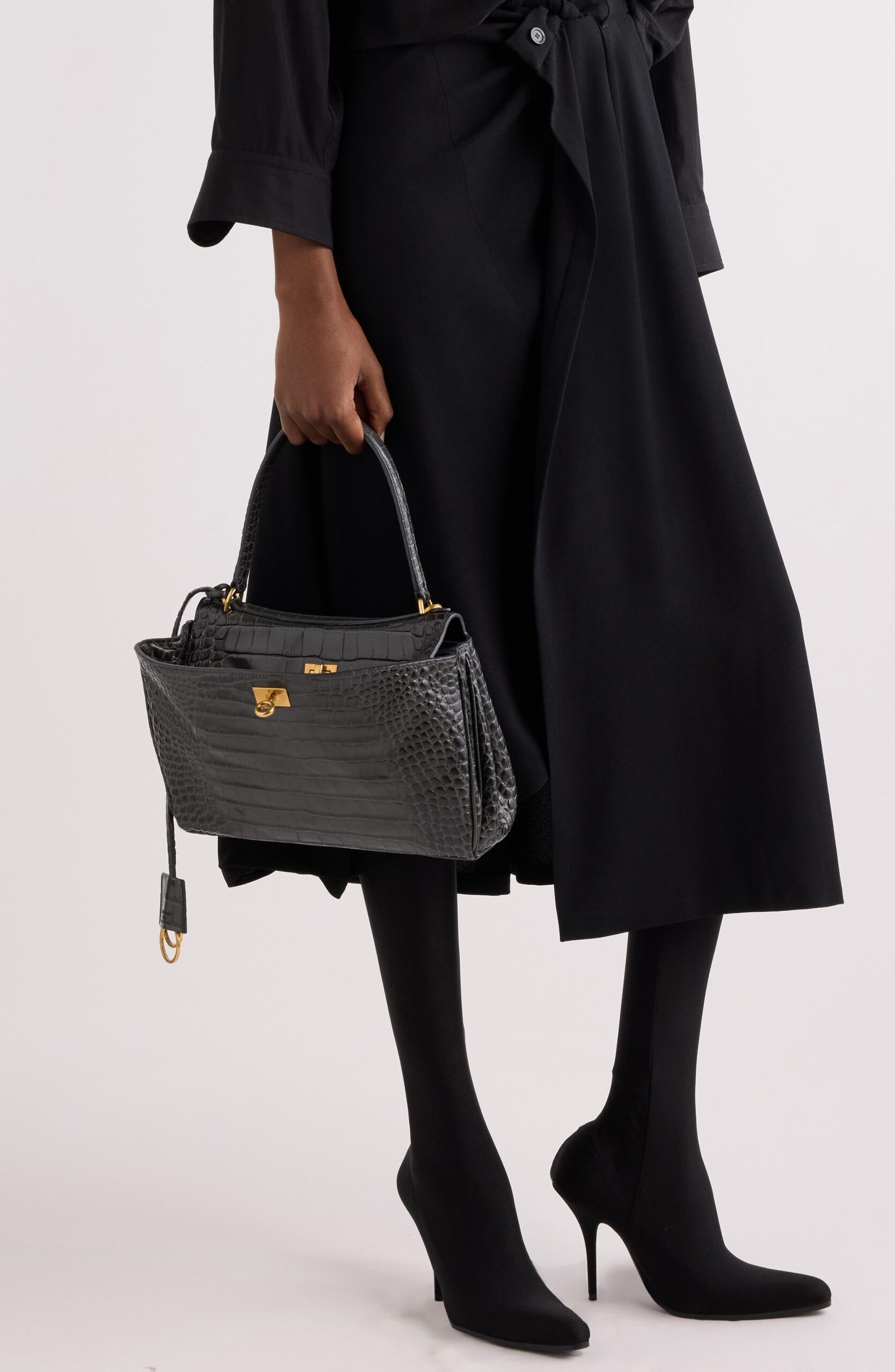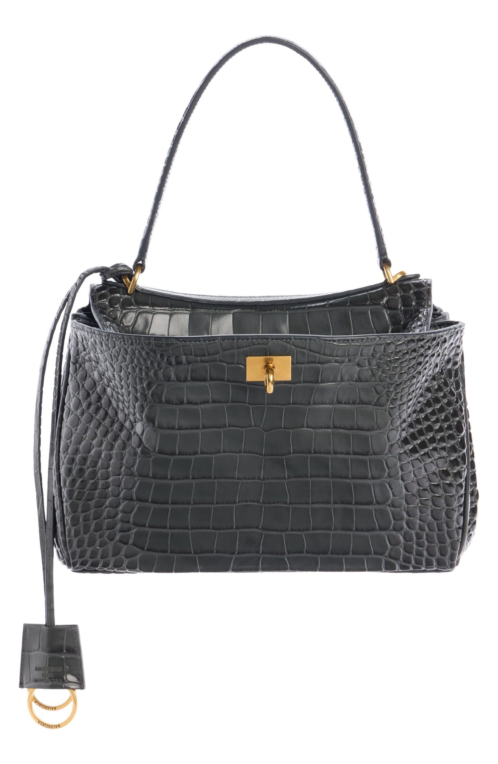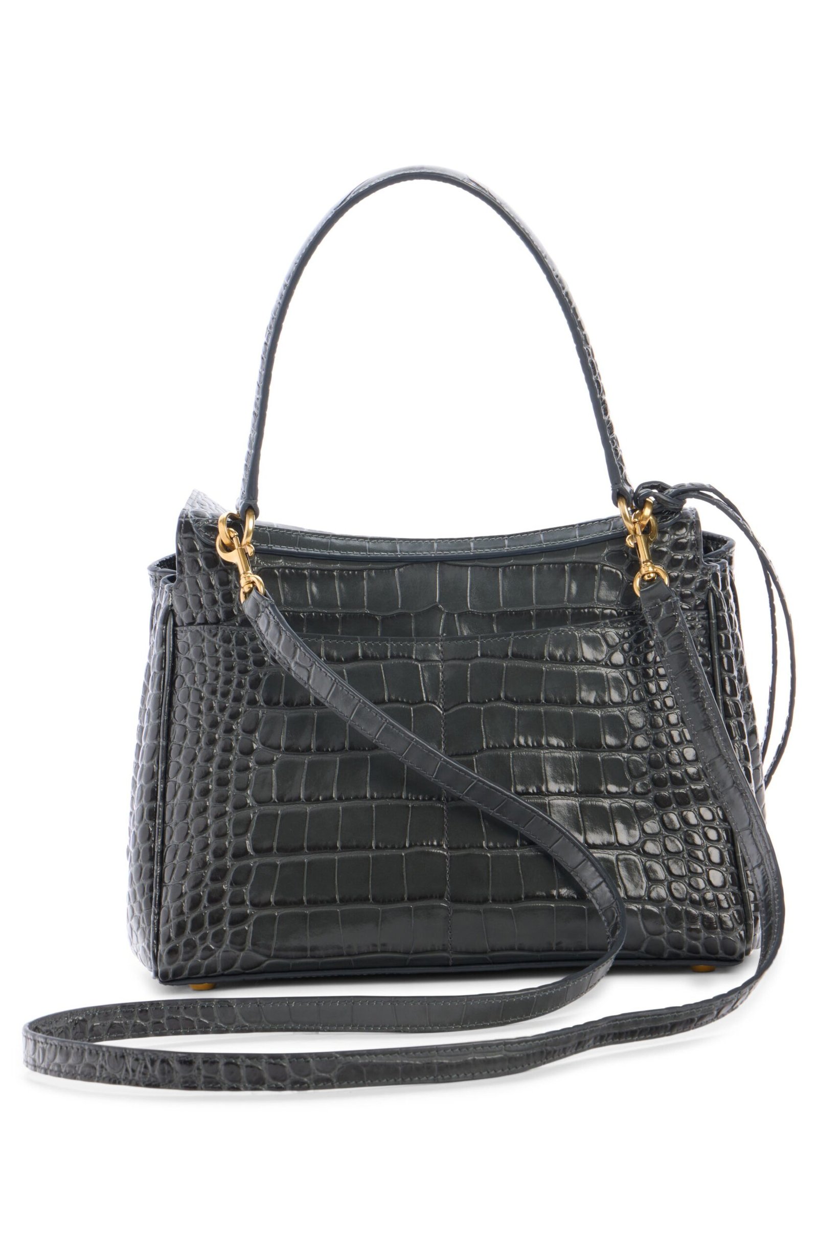 The epitome of understated luxury, this top-handle bag crafted of croc-embossed calfskin features a slouchy silhouette with a two-position flap closure.