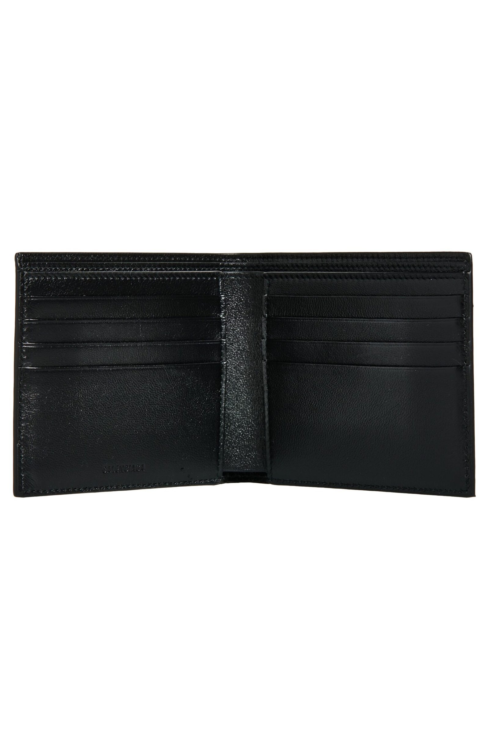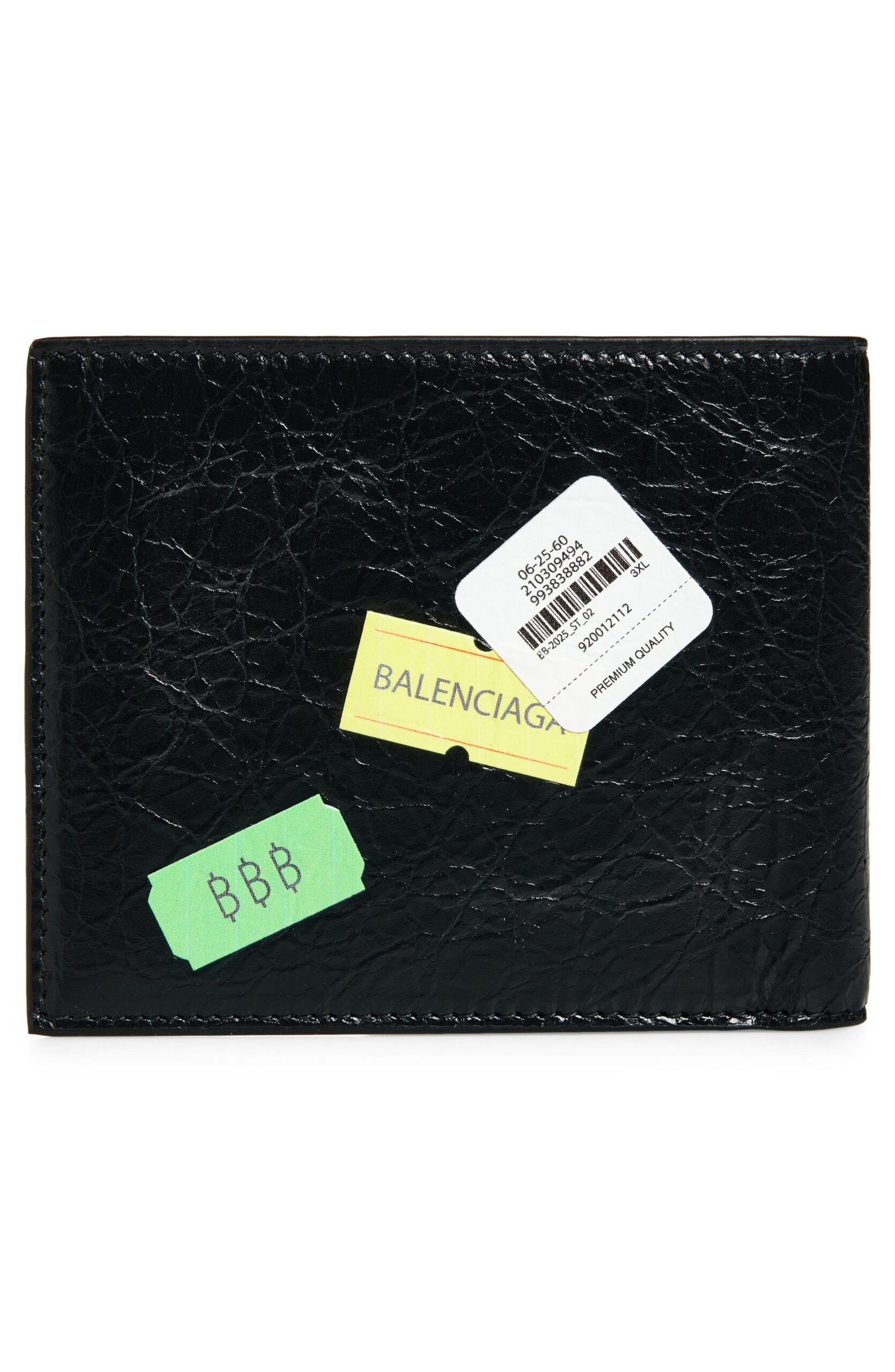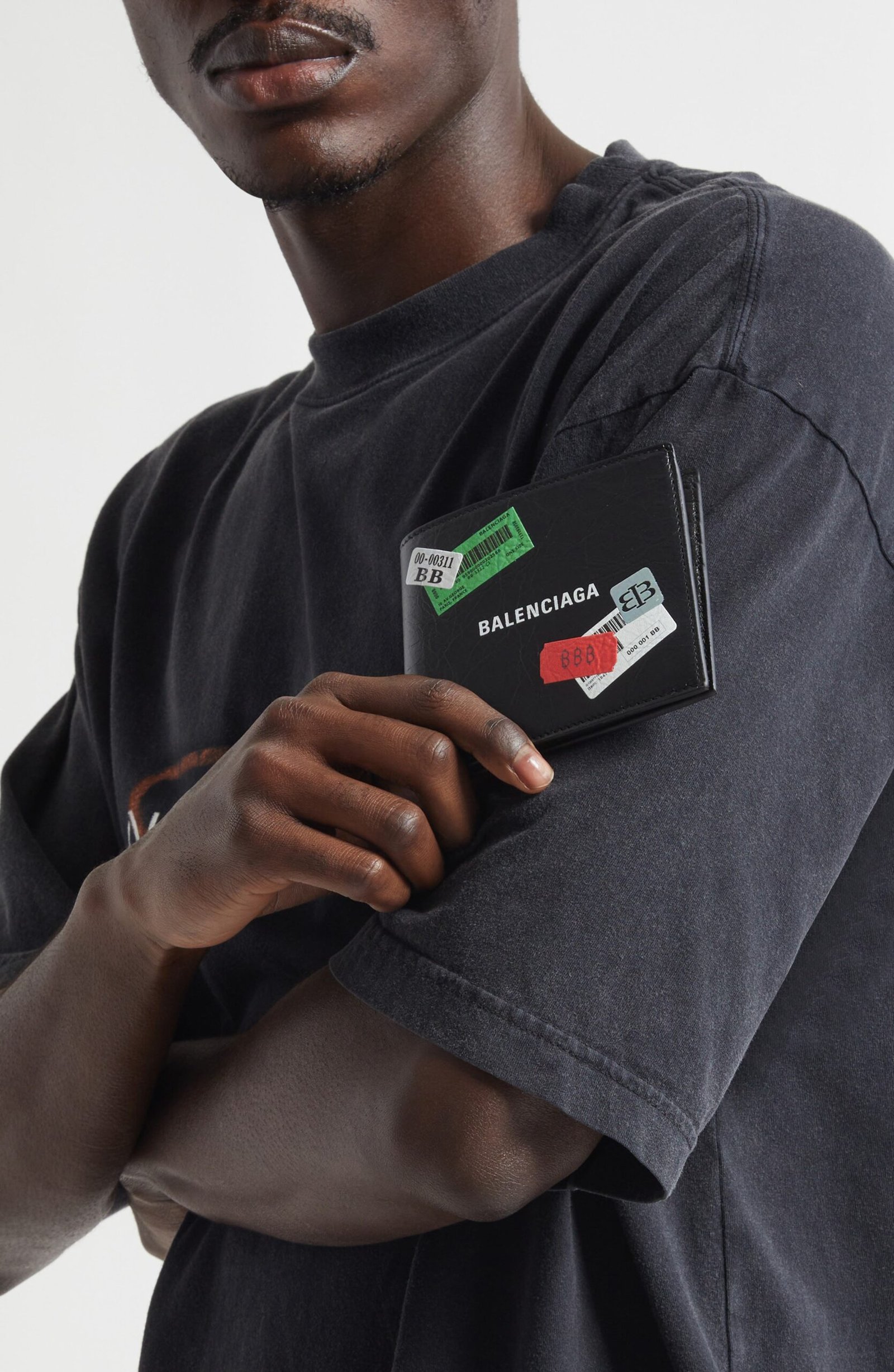 Sticker-inspired logos stamp the richly crinkled leather of slim bifold wallet equipped with plenty of slots and pockets.