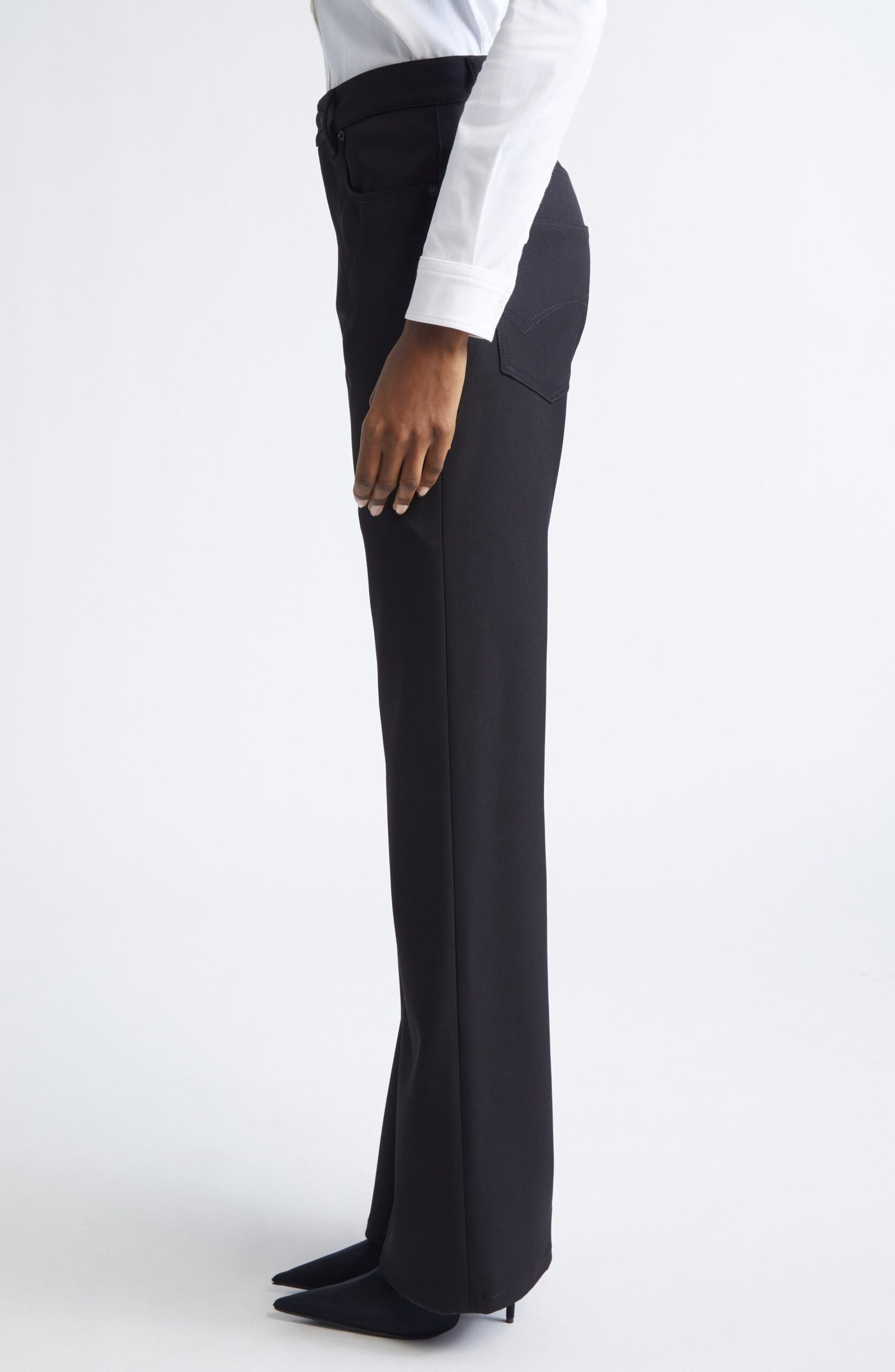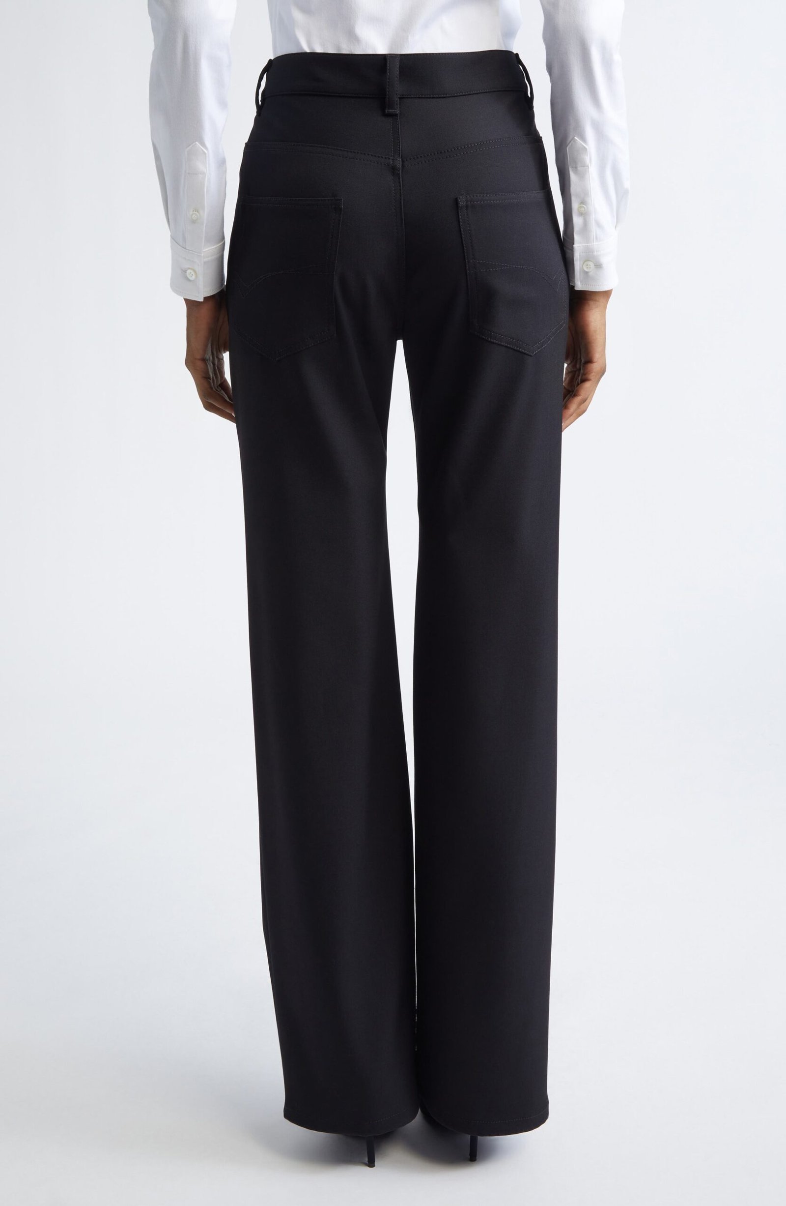These runway-featured pants are styled like your favorite five-pocket jeans—complete with rivets and all—but are tailored from stretch-wool twill for a sartorial polish.