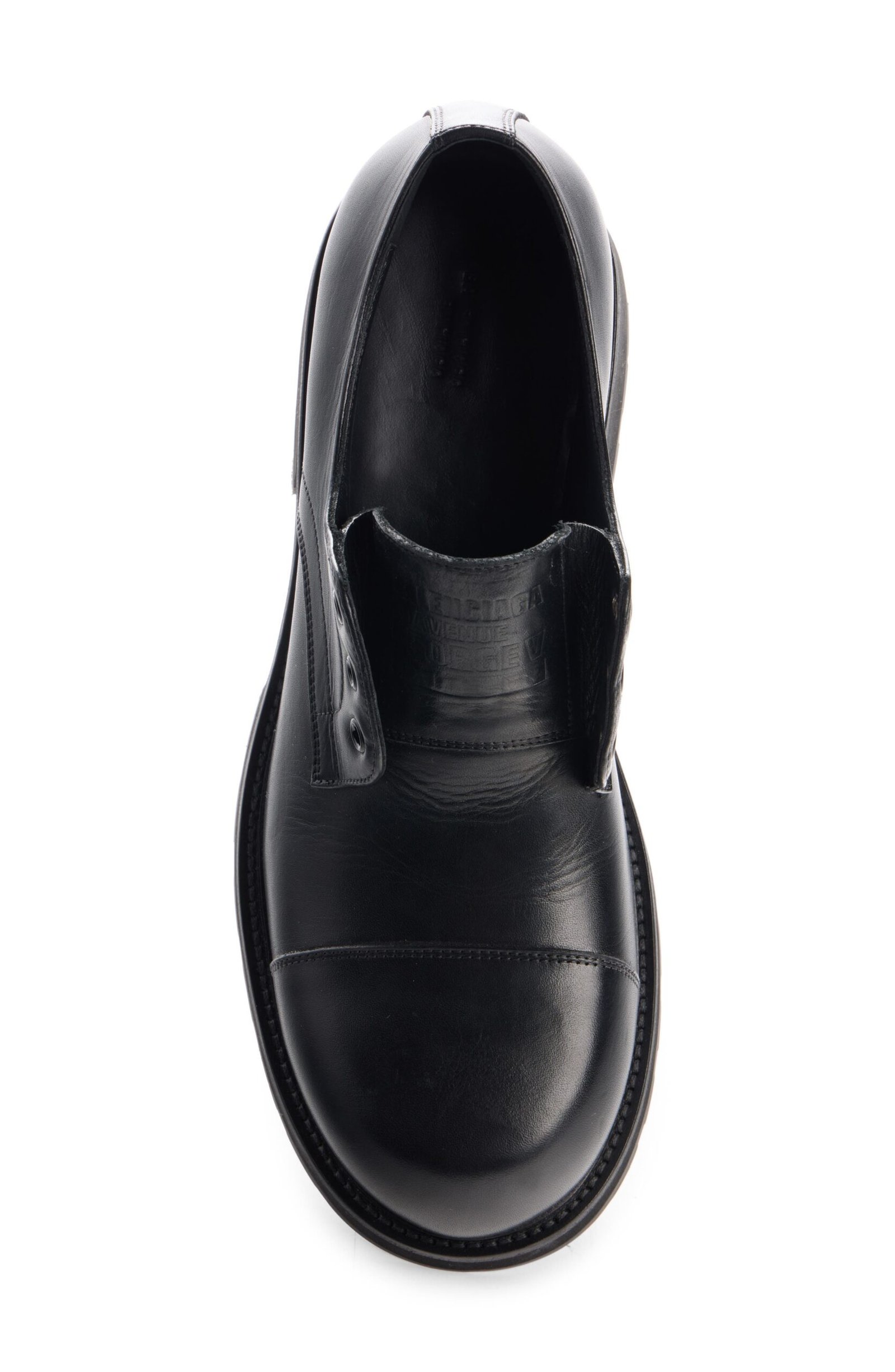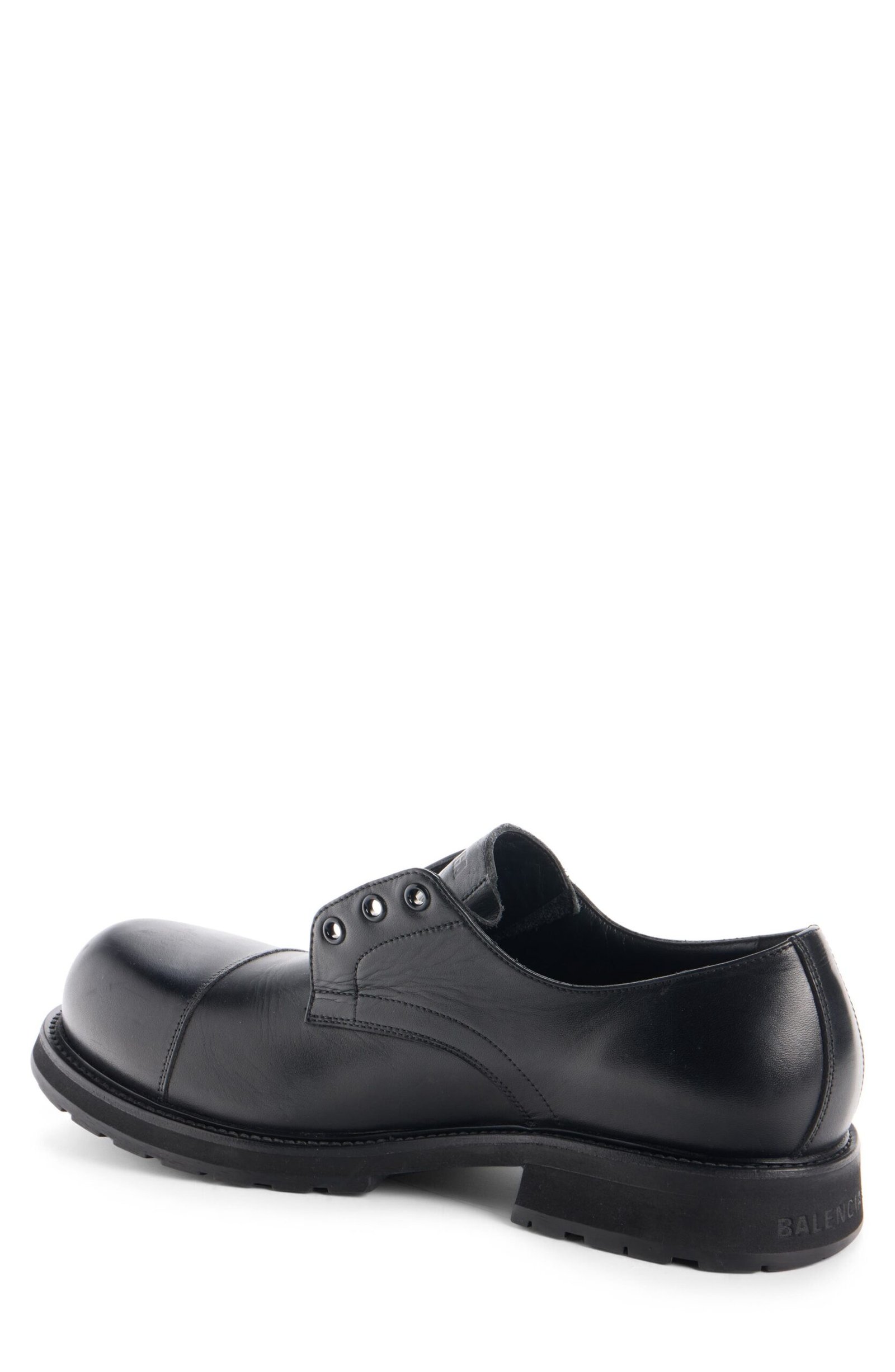 The Truck line’s bulbous cap toe adds signature irreverence to this leather derby that can be worn with or without laces.