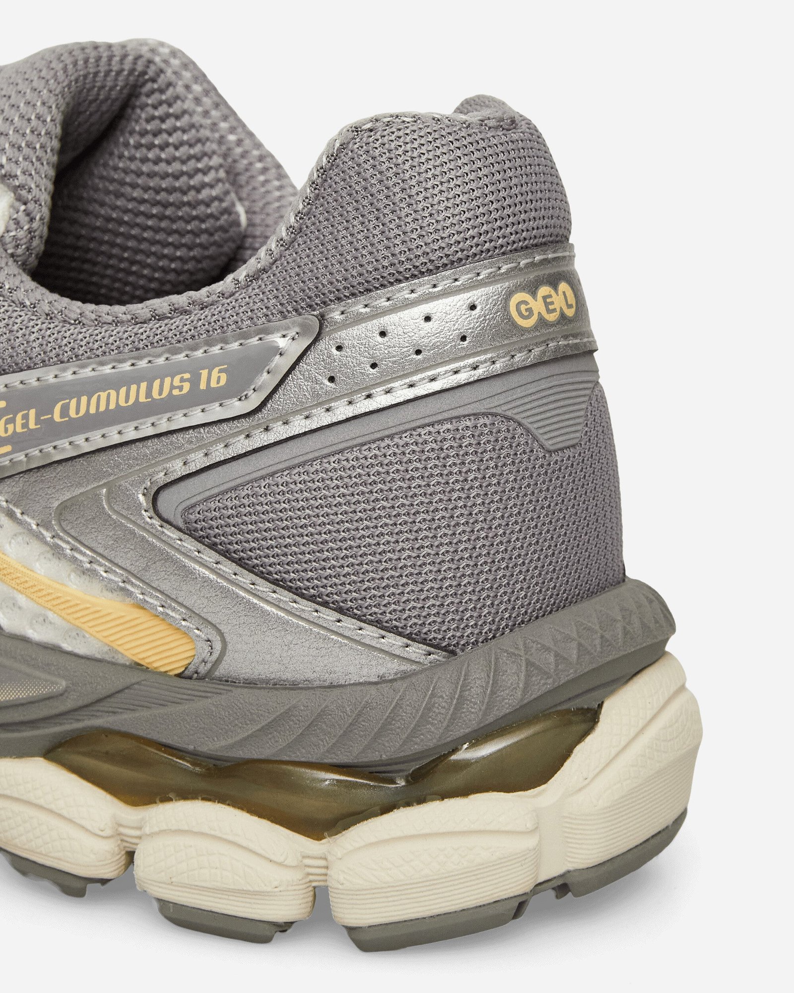 Originally launched in 2014, the GEL-CUMULUS 16 sneaker is formerly recognized for its soft cushioning capabilities while running longer distances. Its upper construction features a combination of matte synthetic leather overlays, no-sew paneling, and open mesh underlays. This fusion of materials creates a technical aesthetic that's symbolic of advanced running shoes in the 2010s.