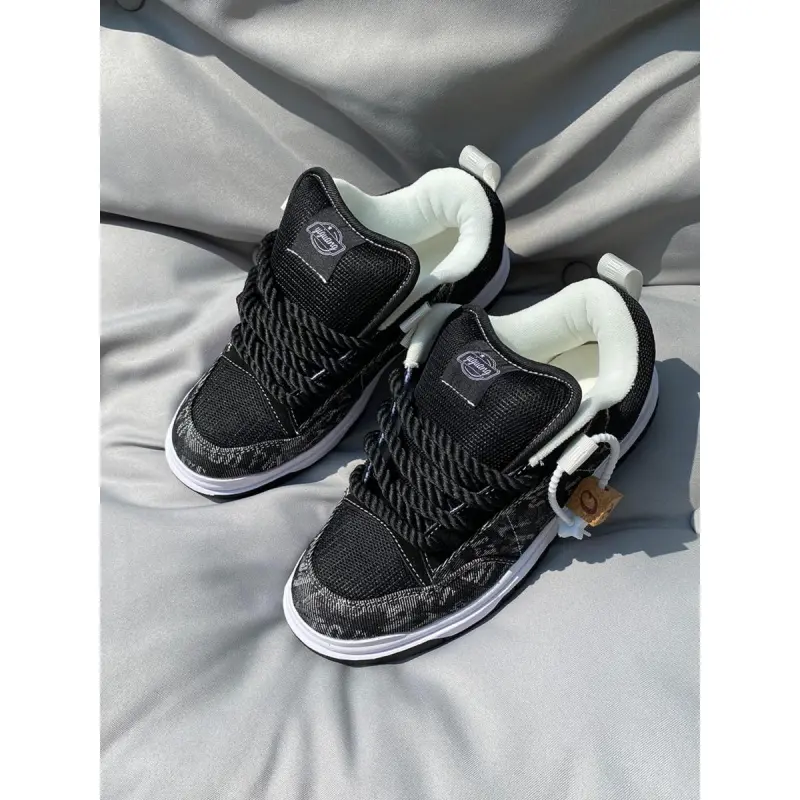 [High-visibility colors]: Featuring a black and grey patchwork, these shoes stand out while maintaining a modern aesthetic for both genders.